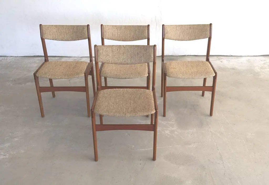 1960s Erik Buch Set Of Four Teak Dining Chairs Inc. Custom Reupholstery