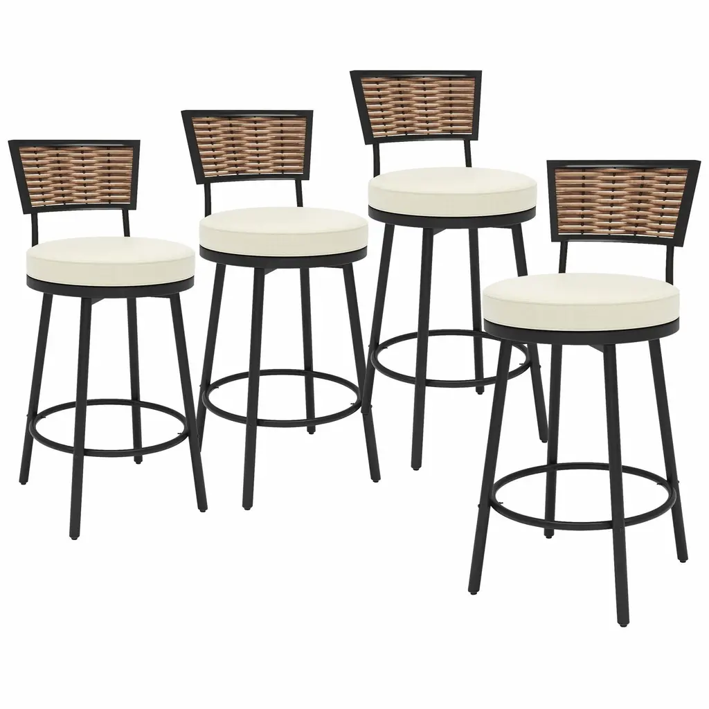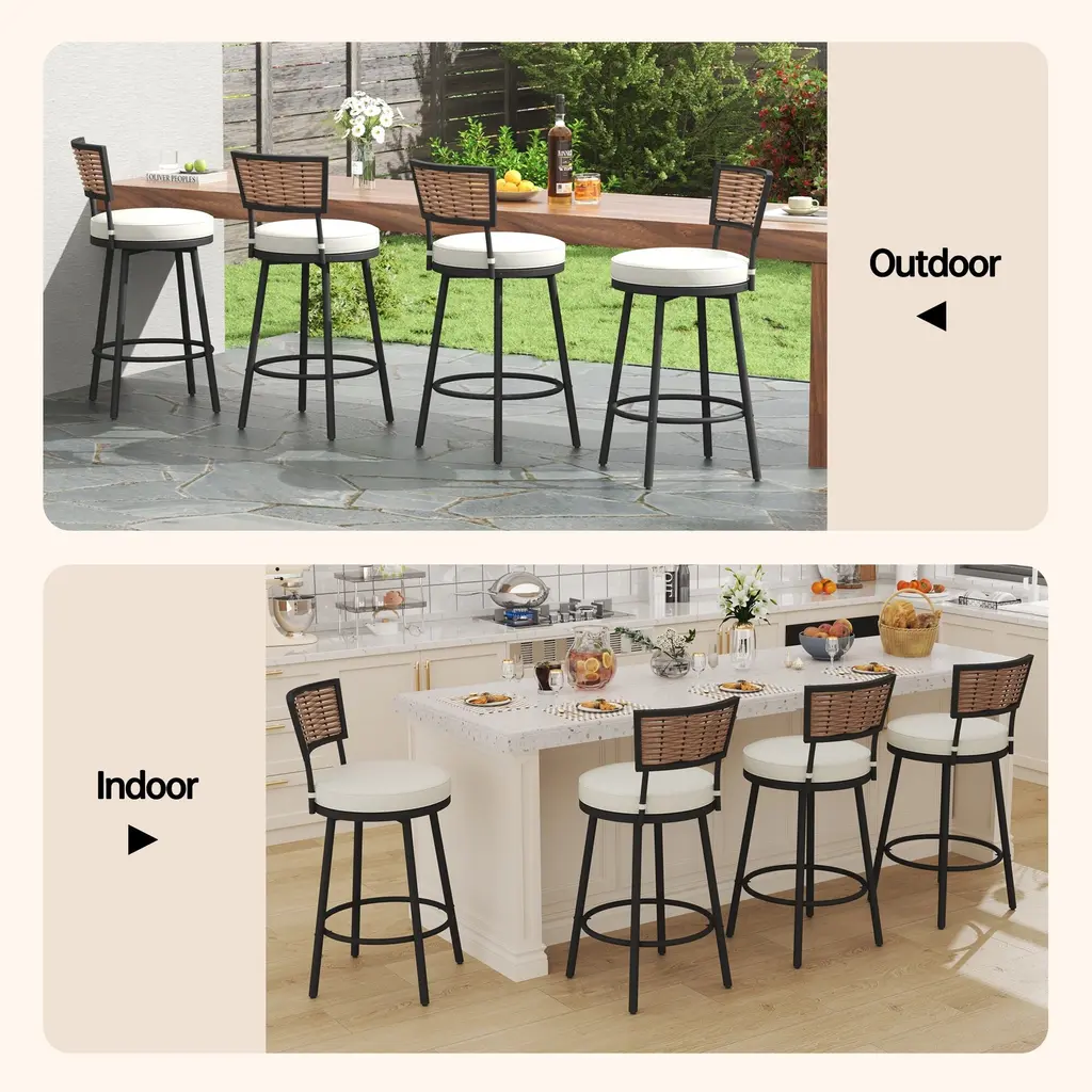 2/4/6 Pcs Outdoor Swivel Bar Stools,patio Dining Chairs,rattan Backrest Set For Yard, Lawn, Deck, Poolside - 4Pcs