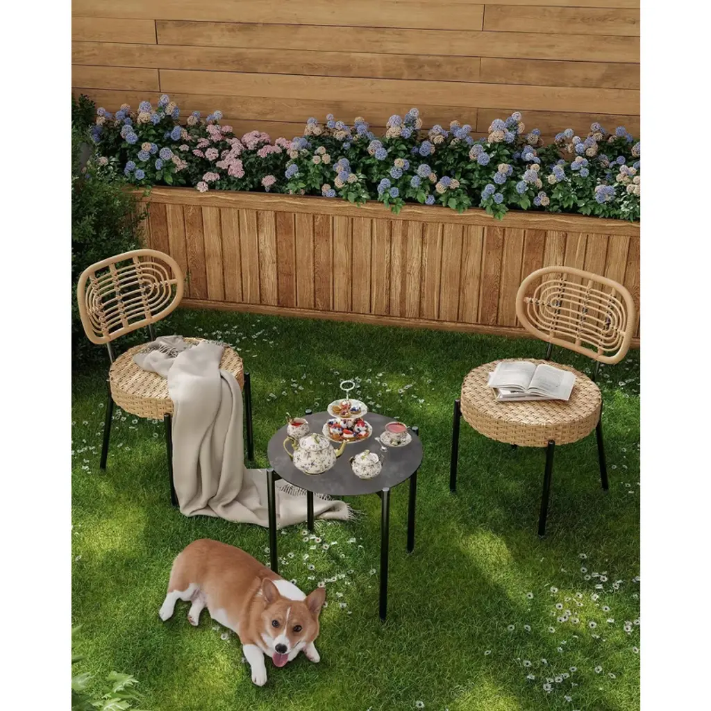3 Piece Wicker Patio Bistro Furniture Set, Outdoor Dining Chairs, Includes 2 Rattan Chairs And Tempered Glass Table, All Weather Patio Bistro Set