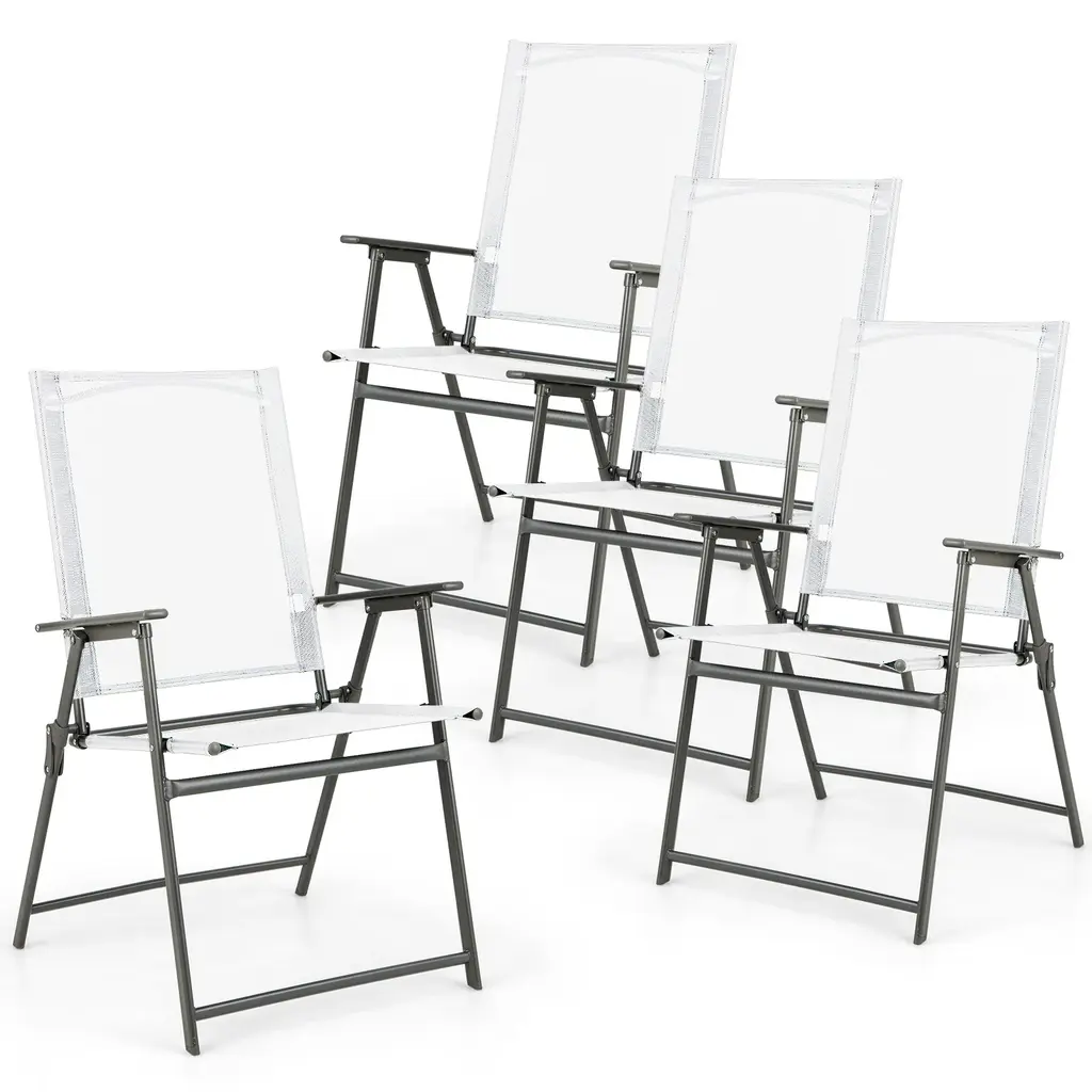 4 Pcs Patio Folding Portable Dining Chairs Metal Frame Armrests - White