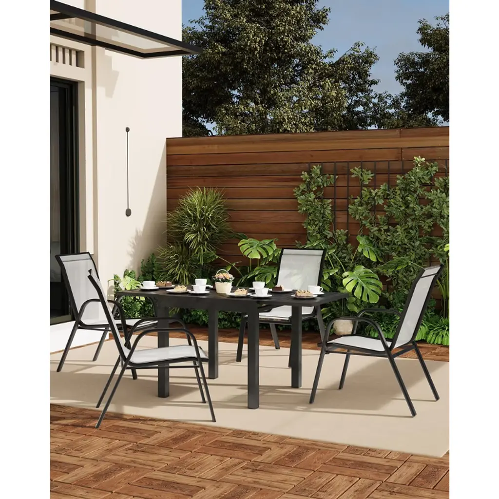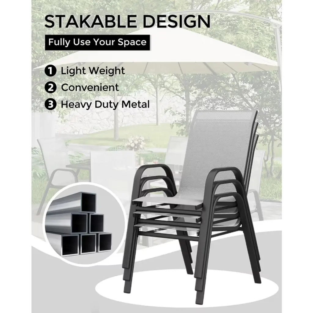 4-piece Outdoor Stackable Dining Chairs Set, High Back Patio Stacking Chairs, Metal Frame Patio Chairs For Yard, Patio