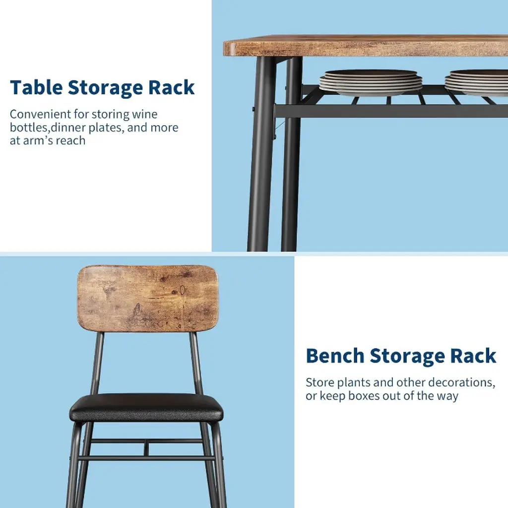 【Modern Elegance & Durable Construction】Elevate your dining space with this sleek 5-piece table set featuring a rich brown wood-top table and robust metal legs support. Crafted from premium MDF and a reinforced iron frame, it ensures lasting stability and modern style—perfect for apartments, dining rooms, or cozy kitchens. 【Smart Storage for Effortless Organization】Maximize space with the integrated bottom-mounted metal wire storage rack. Ideal for stashing dishes, napkins, and kitchen essentials within easy reach, while maintaining ample legroom. This functional solution keeps your dining area clutter-free and efficient. 【Space-Saving Design for Compact Living】Designed for small spaces, this compact square table set includes 4 upholstered chairs that tuck neatly beneath the table. Its streamlined footprint fits seamlessly in apartments, breakfast nooks, or tight kitchens without sacrificing style or functionality. 【Plush Comfort for Relaxed Dining】Savor every meal with ergonomic padded chairs featuring soft cushions and supportive backrests. The upholstered chairs set of 4 prioritizes comfort, making extended dining or casual gatherings enjoyable in your kitchen or dining room. 【Quick Assembly & Long-Term Reliability】Enjoy hassle-free setup with clear, step-by-step instructions. For sustained durability, simply screws periodically. This 5-piece dining table set for two maintains sturdiness year after year—ideal for busy households seeking fuss-free furniture.