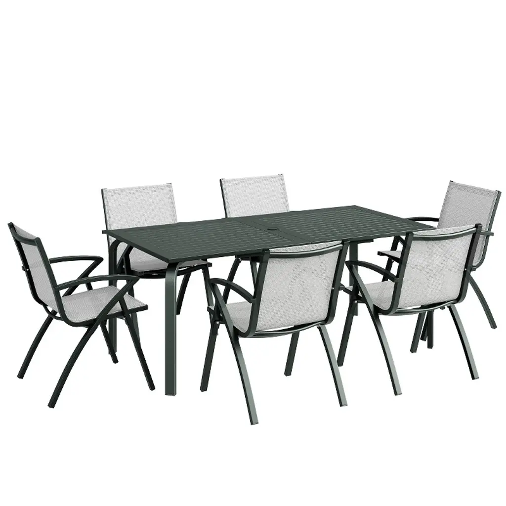 7 Pieces Aluminum Patio Dining Set With 6Pcs Outdoor Dining Chairs & 71" Patio Table For 6-8 Person