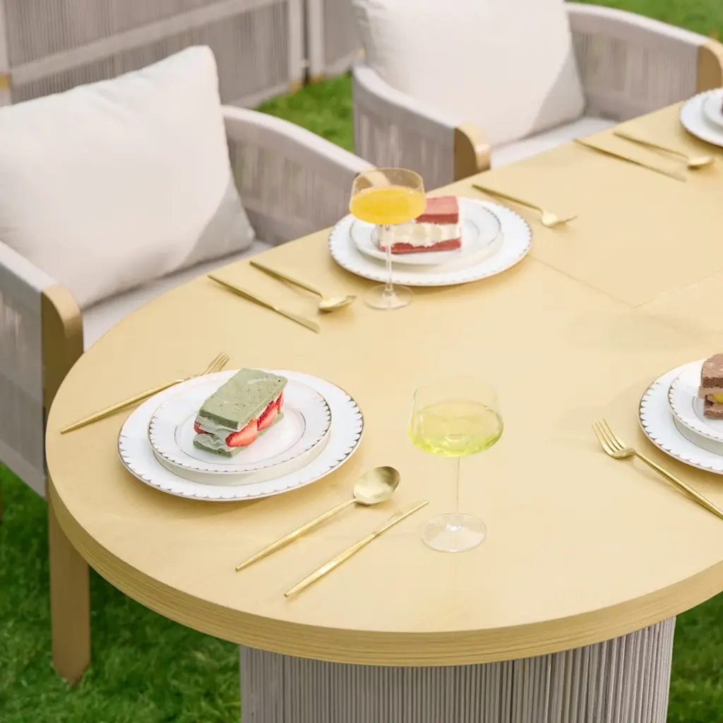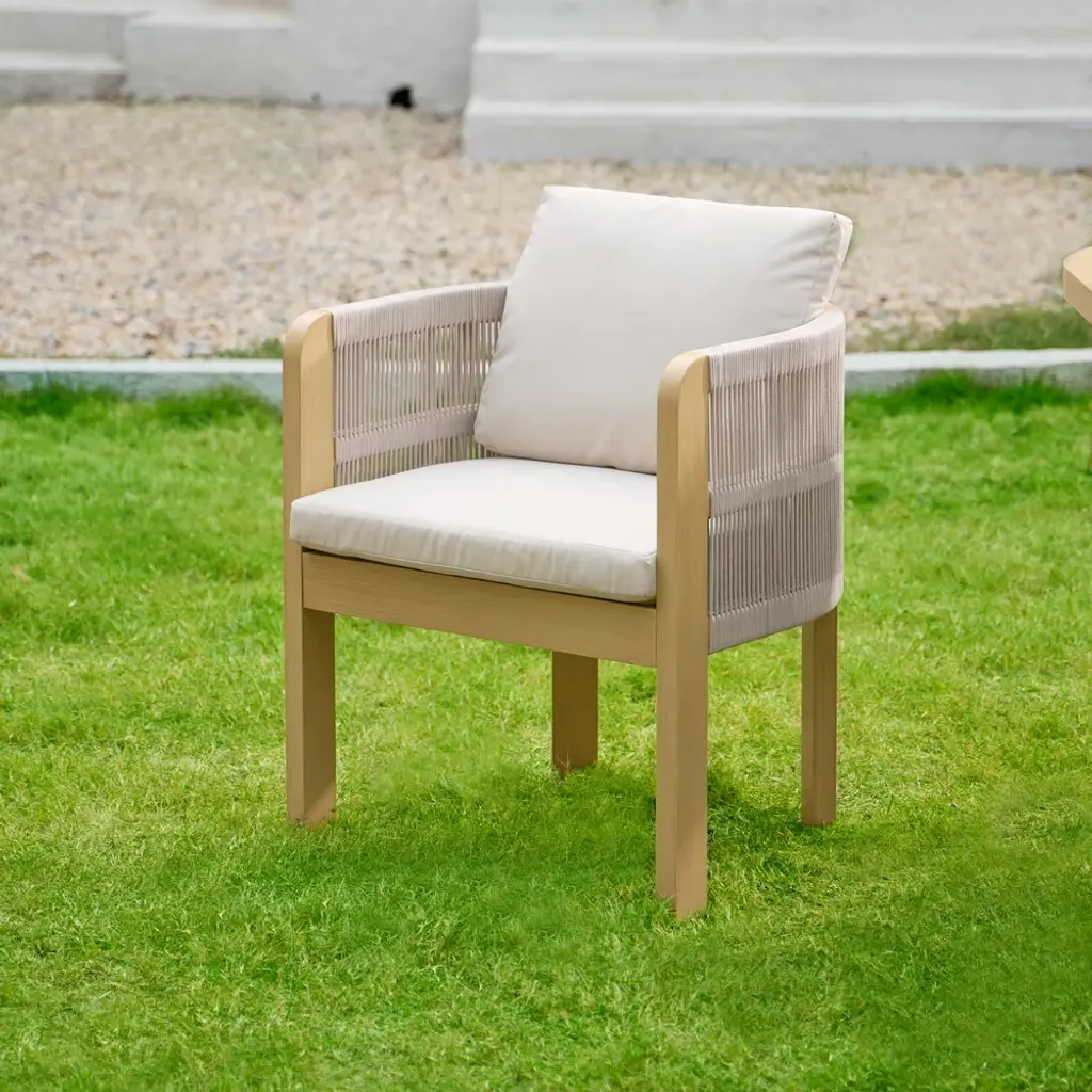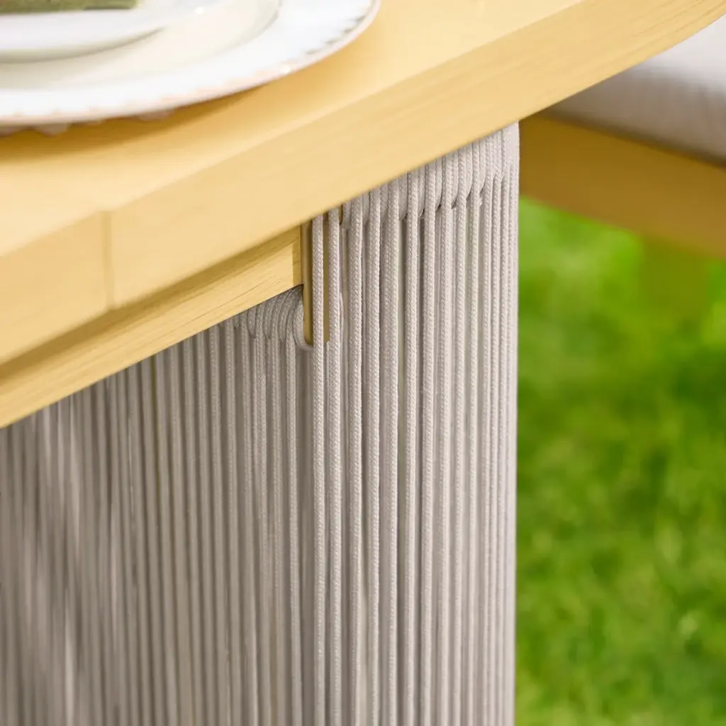 This 7-piece farmhouse style aluminum outdoor dining set offers both functionality and style, featuring an extendable tabletop and six woven armchairs. Perfect for accommodating larger gatherings, the set is designed with durable, weather-resistant materials, making it ideal for year-round outdoor dining. Its sleek aluminum frame and comfortable woven chairs bring a modern touch to any patio, deck, or garden.