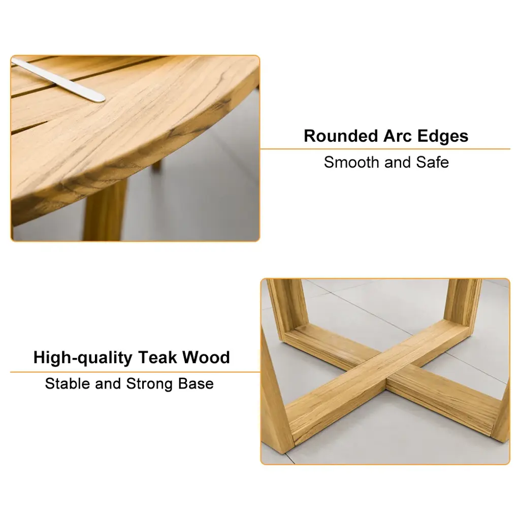 7 Pieces Teak Outdoor Dining Set Wood Round Dining Table With 6 Chairs In Natural