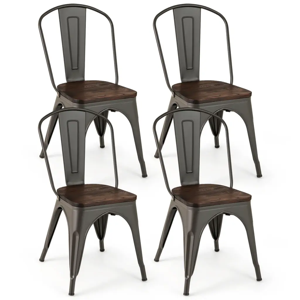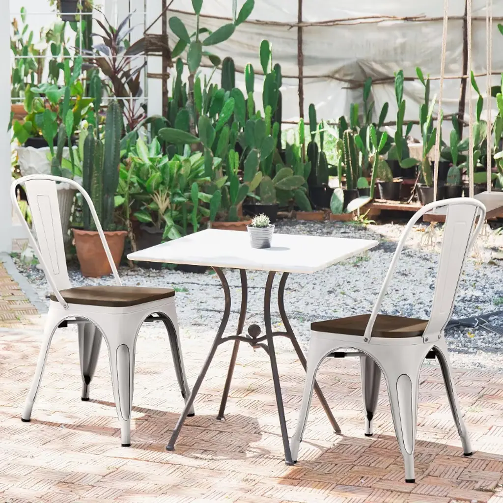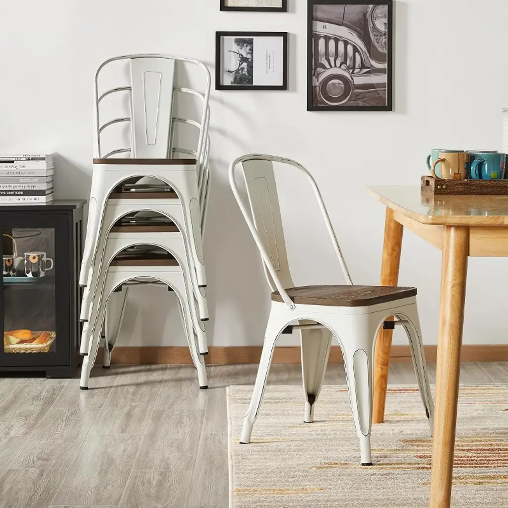 The seat of the side chair is made of wood and the other parts are made of iron. Offer you a comfortable seat and solid support. It is solid enough for your daily needs. The load-bearing capacity is 150kg 330lb.The side chairs are generally applicable for bistros, patios, cafés, shopping malls, restaurants, dining rooms, and kitchens, etc.