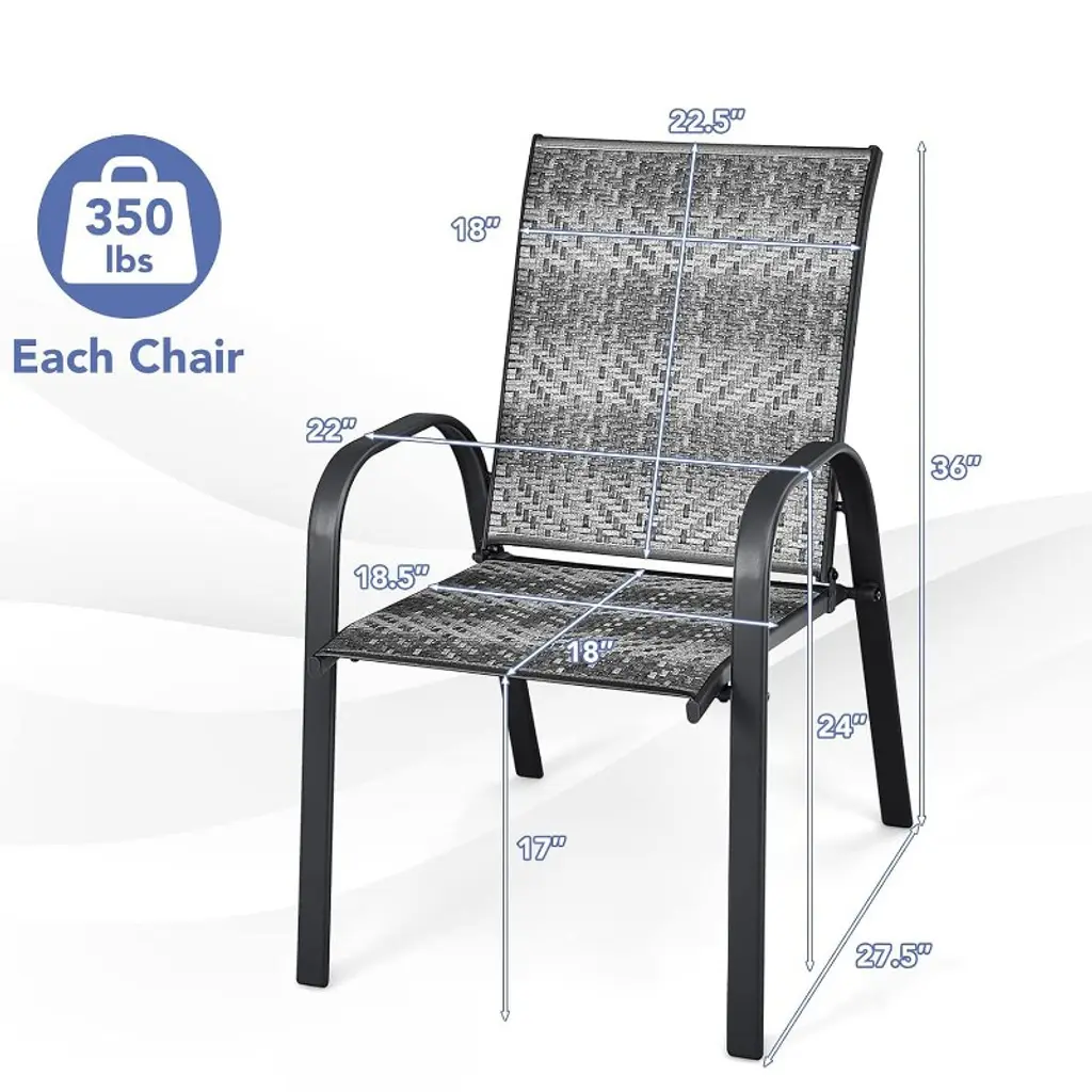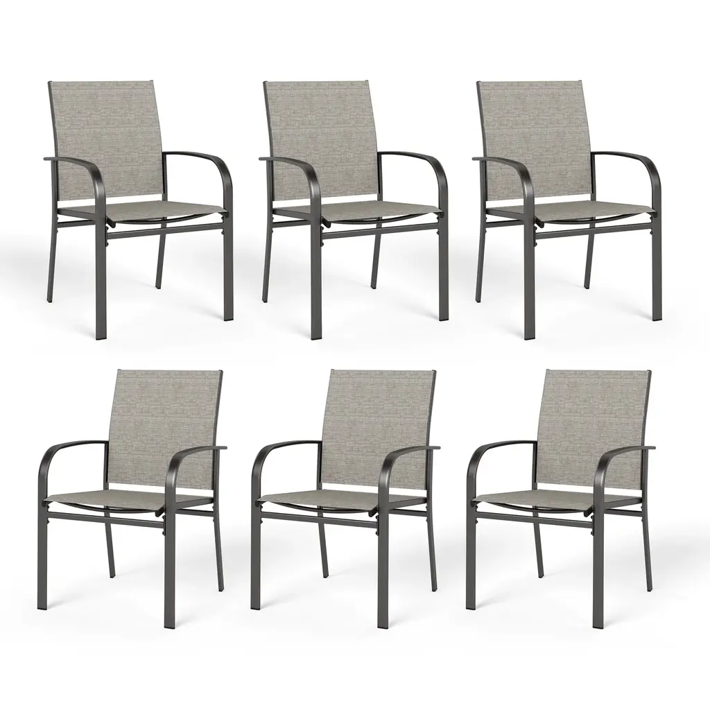 Combining curved backrests, cozy armrests and deep seats as one, these ergonomic outdoor armchairs fit your body curve perfectly to bring ultimate coziness. Therefore, you can use these comfortable chairs to entertain your guests, always ready for your next gatherings anytime, anywhere.To maximize your outdoor space, these patio dining chairs can be stacked together which greatly saves your outdoor space and make movement and storage more convenient. Please do not stack more than 3 chairs to prevent them from accidentally falling.