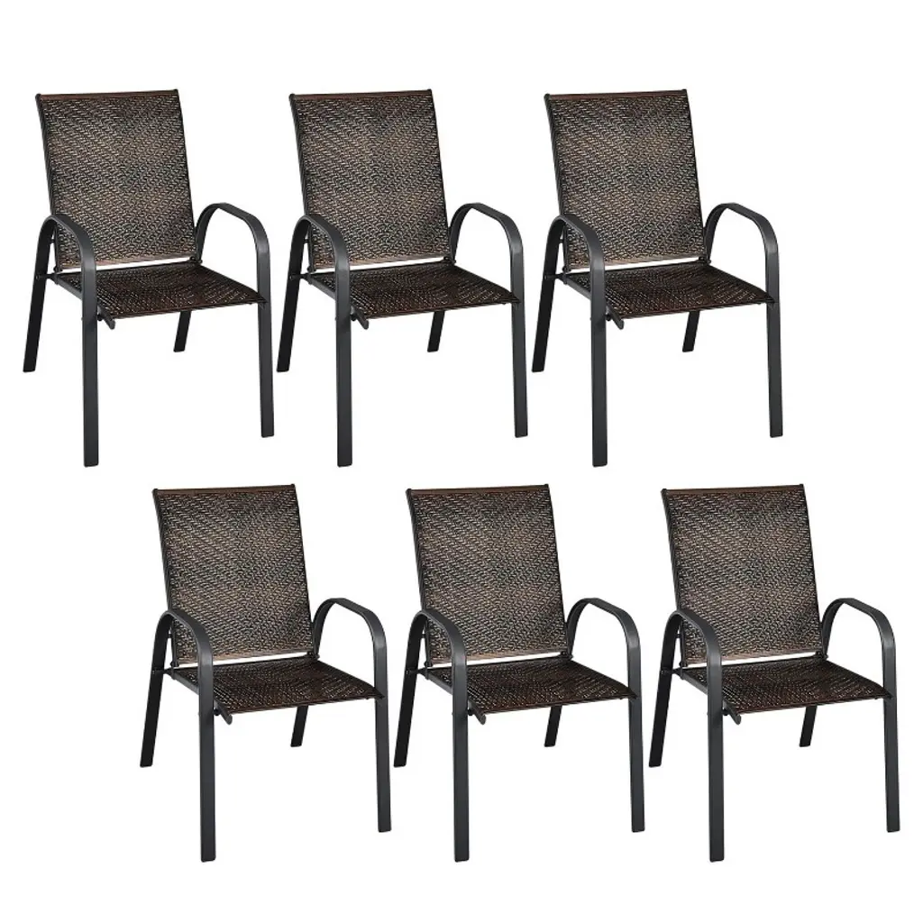 Adile Set Of 6 Outdoor Pe Wicker Stackable Dining Chairs, Mix Grey