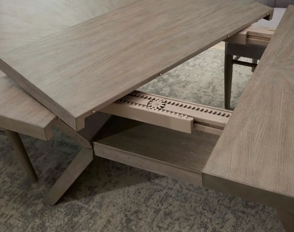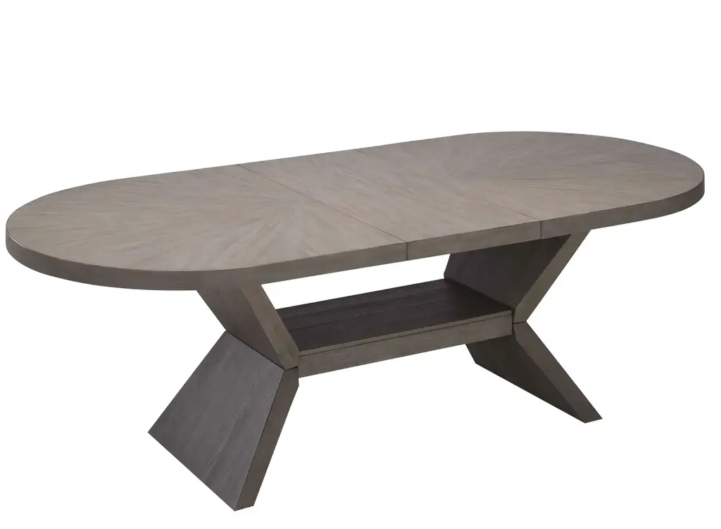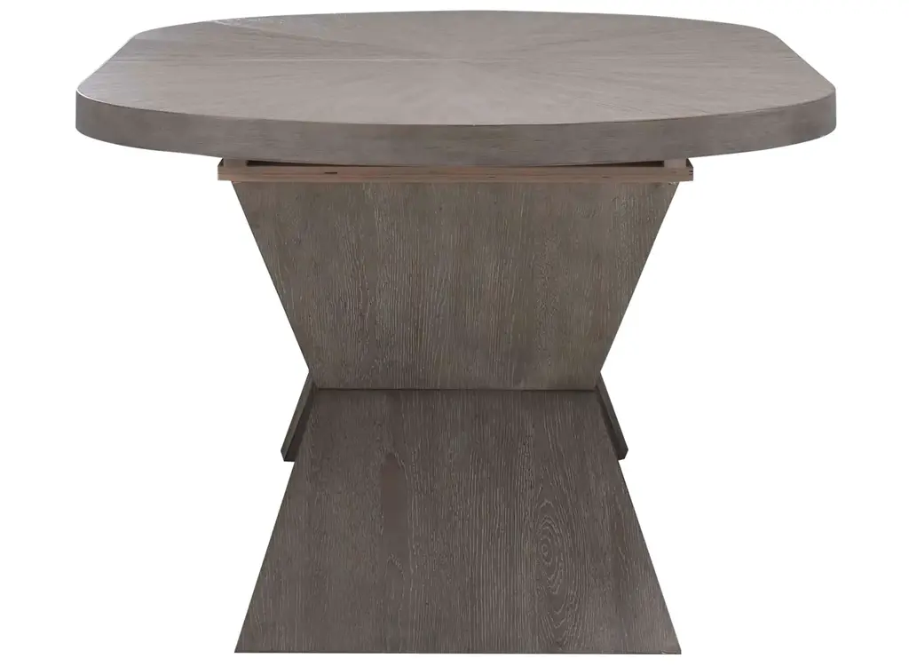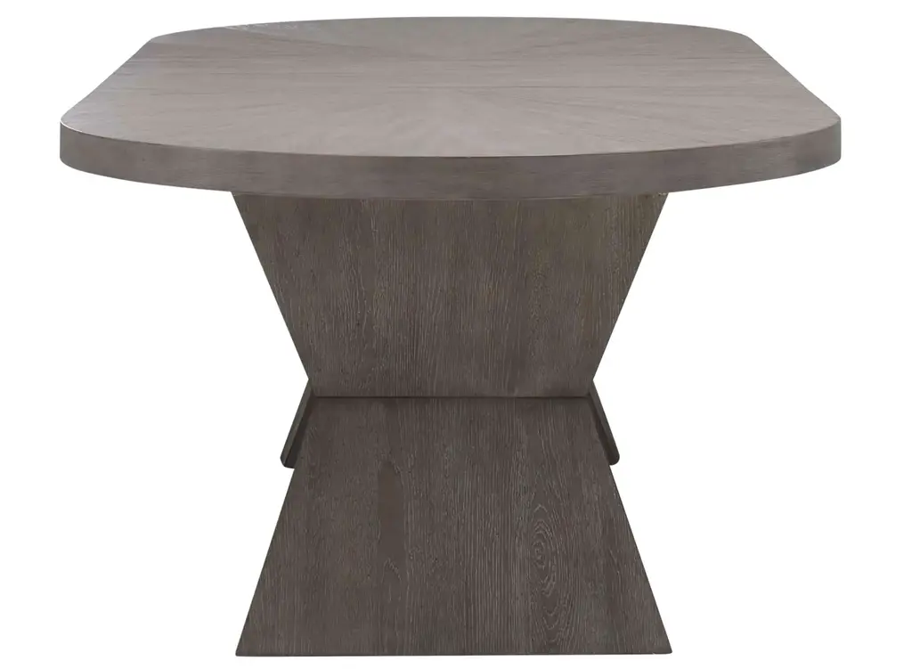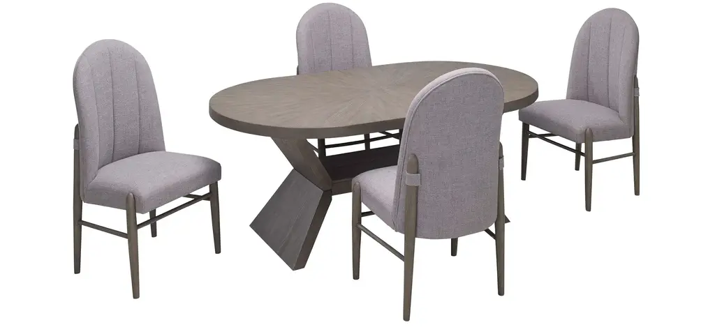 The Aldo is not your run-of-the-mill dining set! Get ready for dining and entertaining outside the box. The uncommon trestle base and oval shape welcome conversation and easy interaction with guests, while unique upholstered chairs have interesting high legs and channel seat backs that welcome diners to linger beyond mealtime.