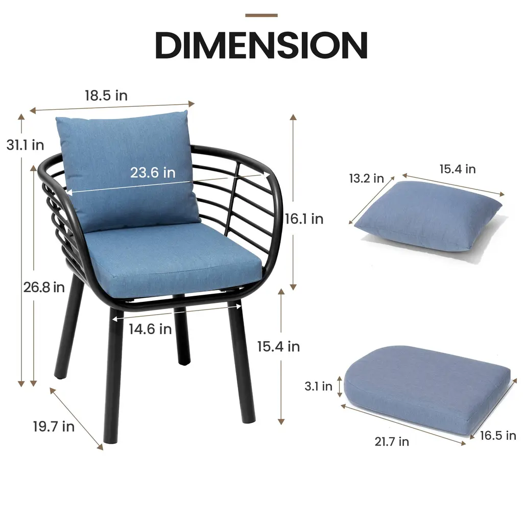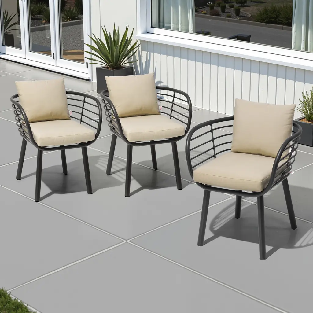 Crafted with a rust-resistant aluminum frame, this outdoor dining chair combines lightweight durability with modern elegance. The ergonomic design features premium Sunbrella fabric cushions in weather-resistant patterns, offering UV protection and fade resistance for long-lasting vibrancy. Removable seat and back cushions allow easy cleaning, while the reinforced frame supports up to 250 lbs. Perfect for patios, poolside, or garden settings, its stackable design ensures space-efficient storage. Maintenance-free powder coating withstands moisture and temperature changes, delivering year-round comfort and style. Features: Dimensions: