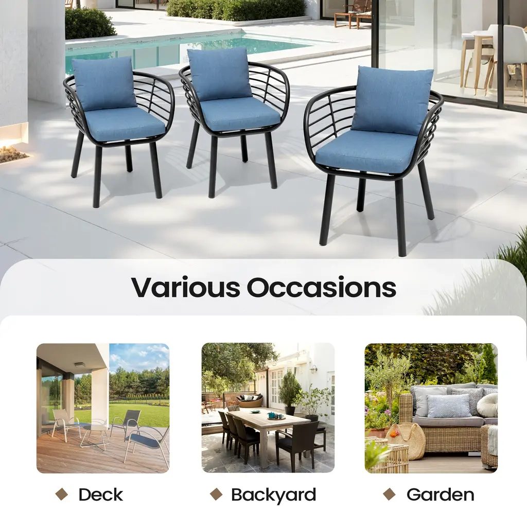 Aluminum Dining Chair With Sunbrella Seat And Back Cushions - Spectrumdenim-Set Of 4