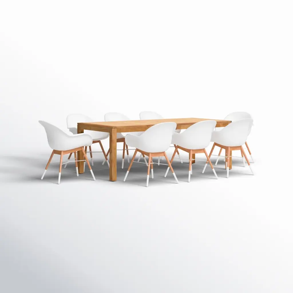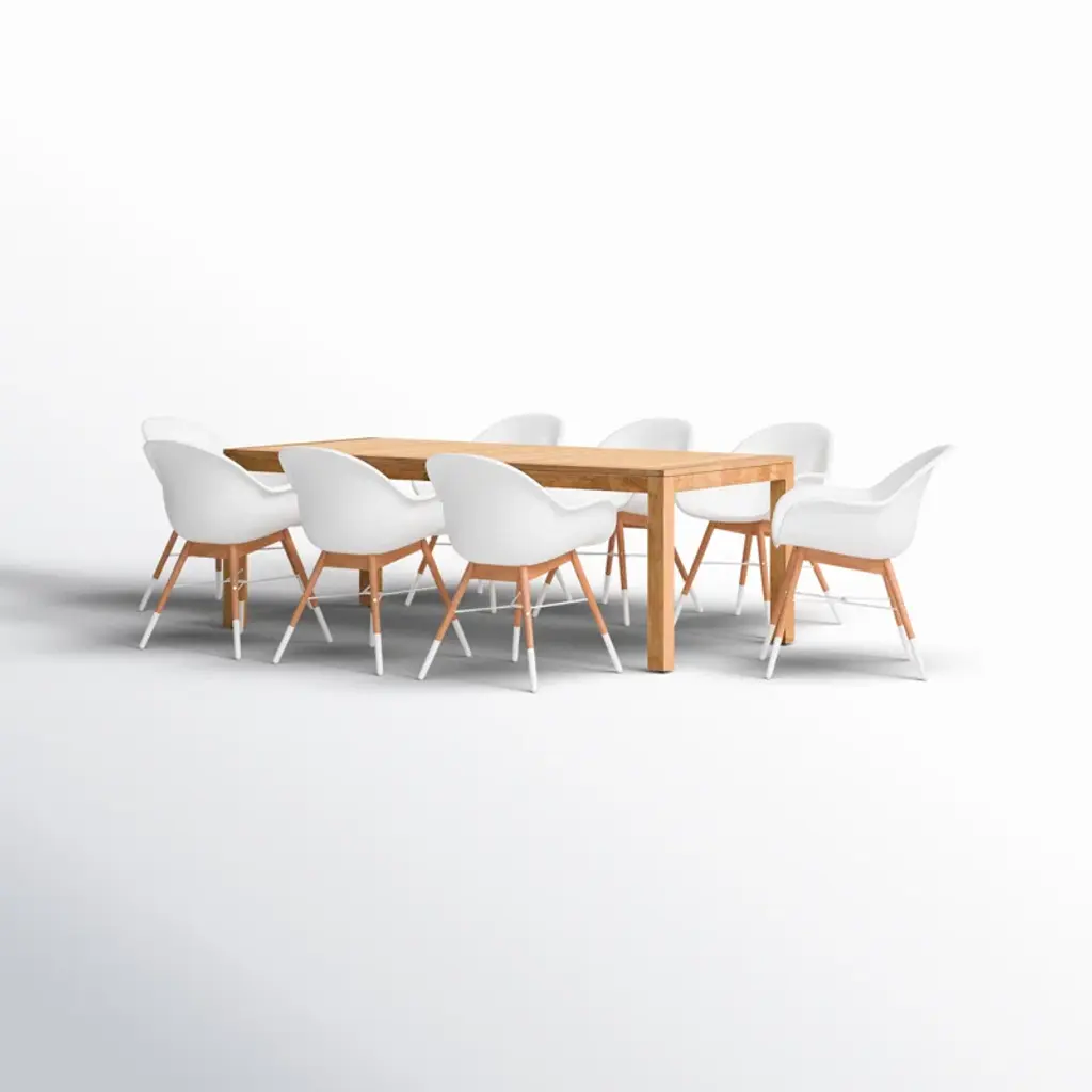 Join yourself to the unique experience of us. This outdoor dining set is composed by just high-quality and premium materials to offer you durability and comfort. Chair is made from own in-house plastic formula - Duresin® and high-quality FSC eucalyptus wood. This makes is hard-wearing, low maintenance and recyclable. Furthermore, our process makes it weather resistance, making it a good long term product. The white, minimalistic design, makes it modern and trendy. Premium rectangular table is your classic outdoor dining table and made of 100% teak that is firm and robust. A good choice for a nice looking garden and many hours outside, enjoying the summer time.