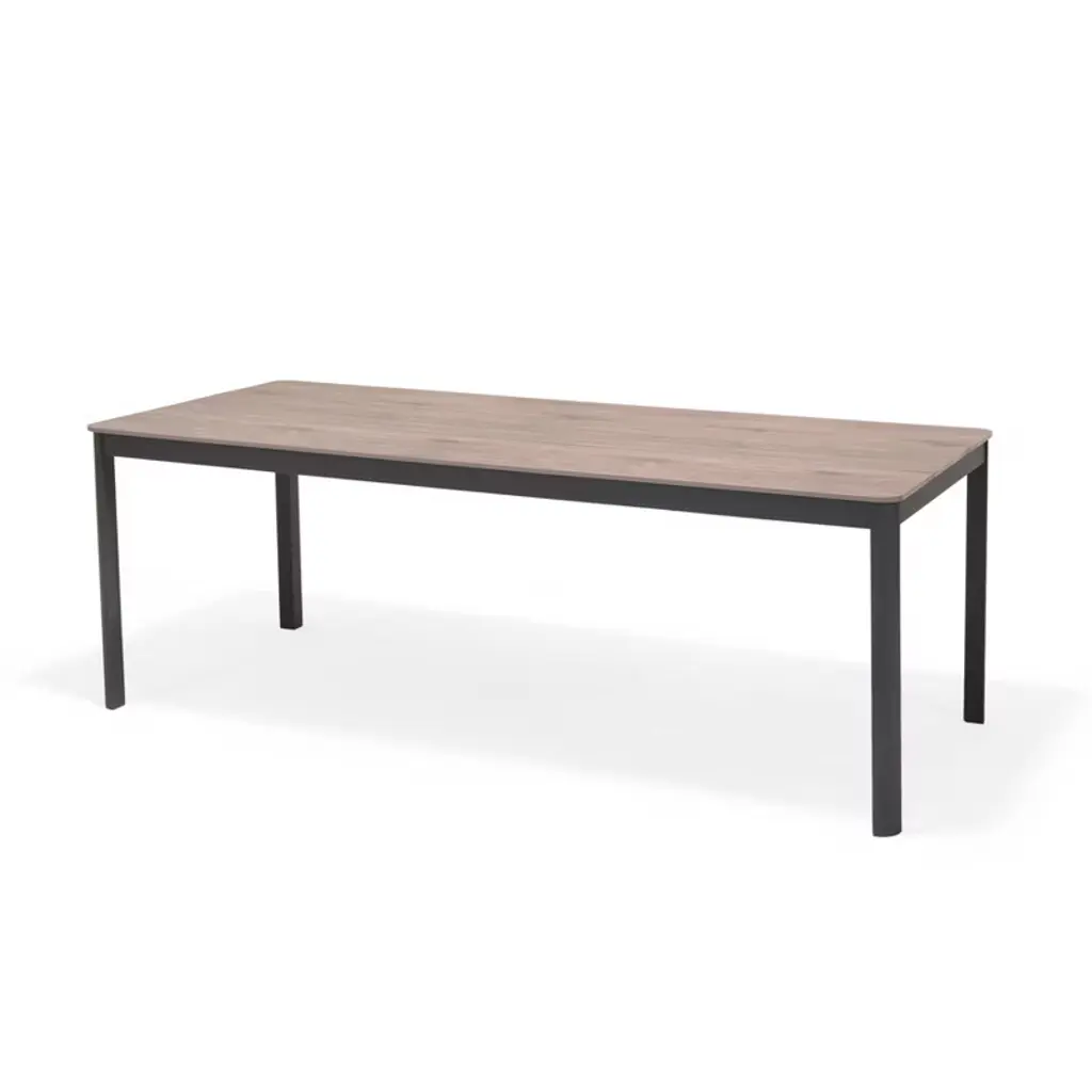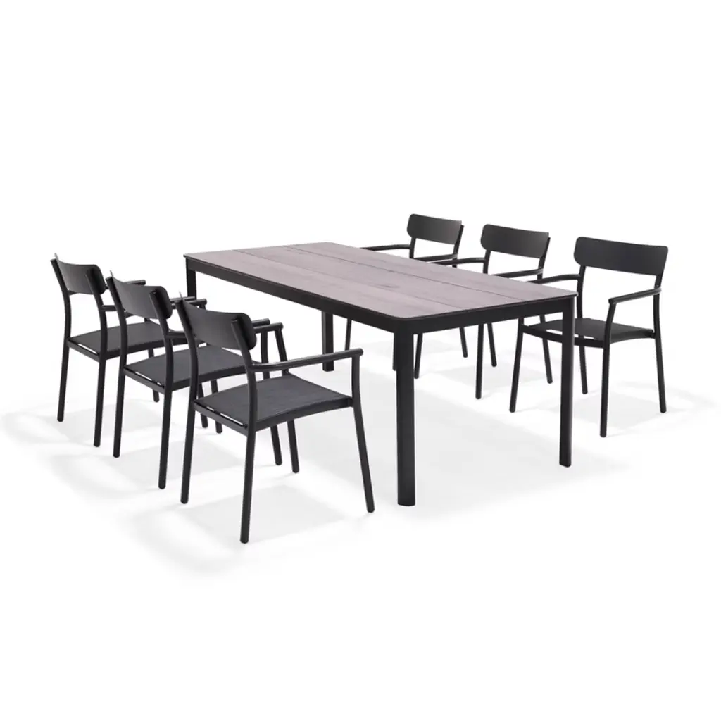 Amazonia presents a modern outdoor dining collection, designed for style, durability, and convenience. Featuring sleek, stackable aluminum chairs and dining tables with a high-performance Duraboard® top, this collection combines contemporary aesthetics with weather-resistant materials. The rust-resistant aluminum frames ensure long-lasting use, while the Duraboard® tabletop offers a natural wood look with superior resistance to the elements. Perfect for any outdoor space, this collection brings sophistication and practicality to your patio. Discover the perfect blend of modern design and functionality today.