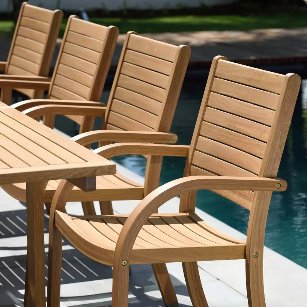 Amazonia presents an exclusive outdoor dining collection, featuring furniture with a luxurious teak finish and made from 100% FSC-certified wood. These pieces combine durability, elegance, and weather resistance, designed to enhance your outdoor space while being environmentally responsible. Discover the collection today and transform your outdoor dining experience! The patio you deserve, by Amazonia.