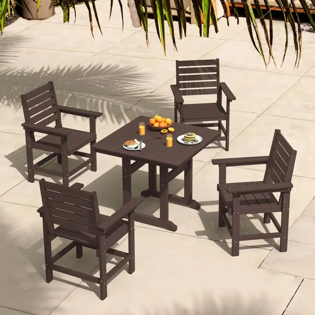 Arceso Patio Table And Chairs Set 5 Pieces, Hdps Weather Resistant Outdoor Dining Set, Square Outdoor Dining Table With 4 Patio Chairs, Coffee Brown