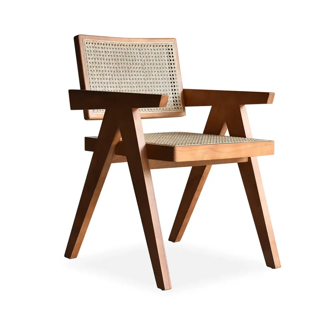 Give your dining room a decidedly retro touch by inviting the dining armchair to your table! Made from solid wood and rattan canework, it is right on trend with the vintage trends of the moment. Thanks to its armrests, this seat will provide you with the necessary comfort while you dine.
