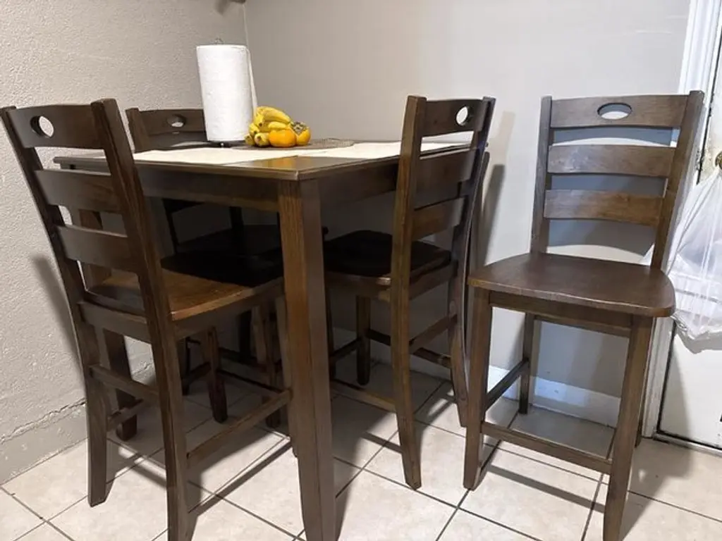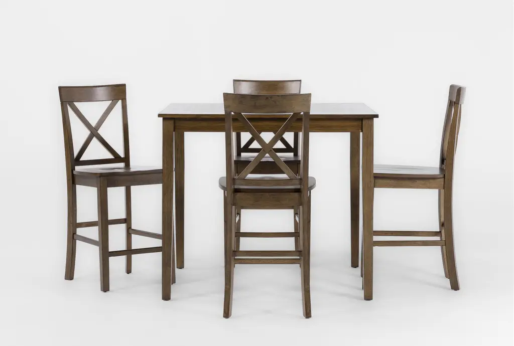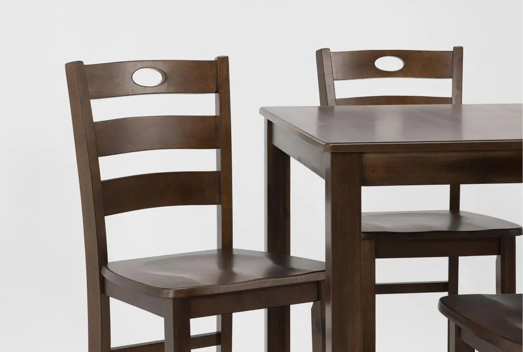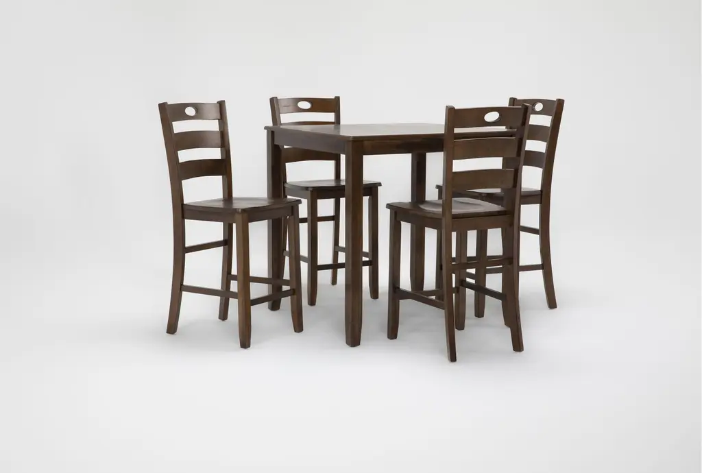 Enhance your dining experience with the Ashed Brown Square Wood 36" Kitchen Counter Height Table With Stool Set For 4. This traditional set features a beautiful brown finish, perfect for adding a touch of warmth to your dining room or kitchen. The set includes four ladderback stools that provide comfortable seating for family and friends.