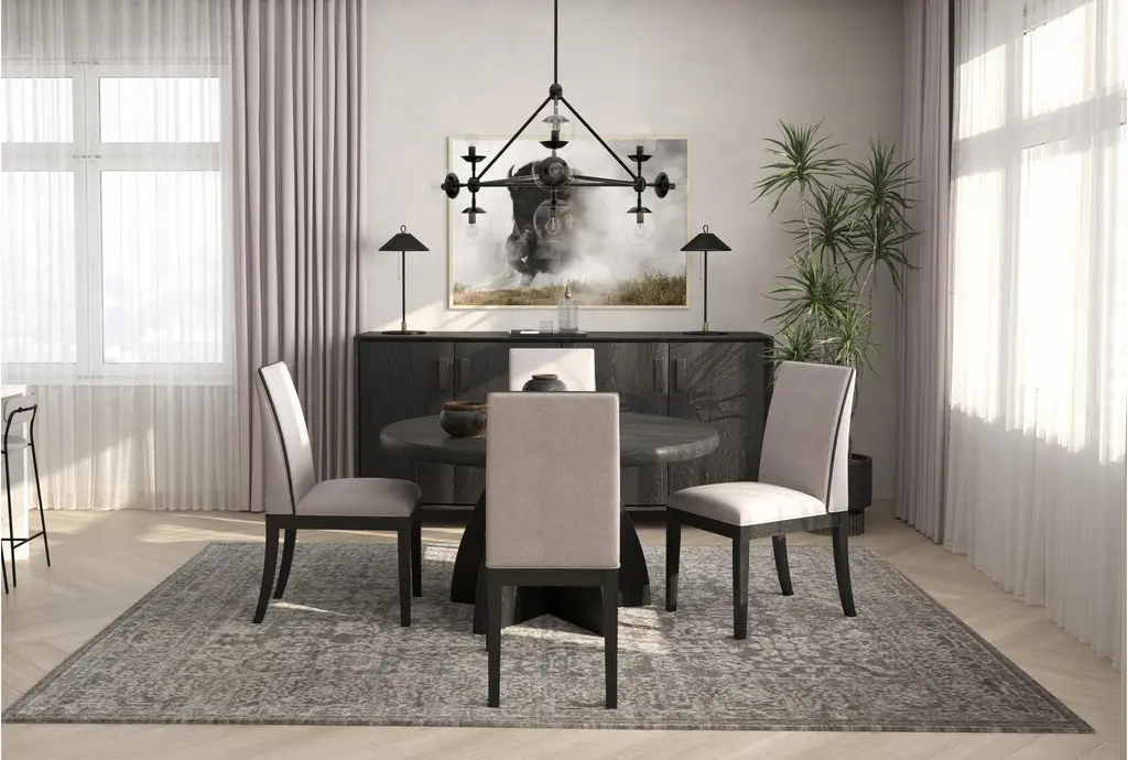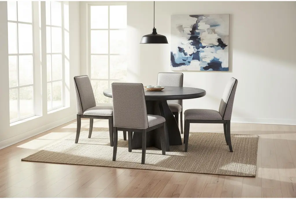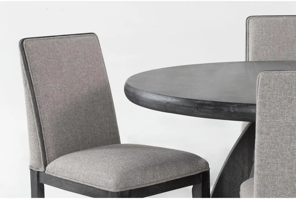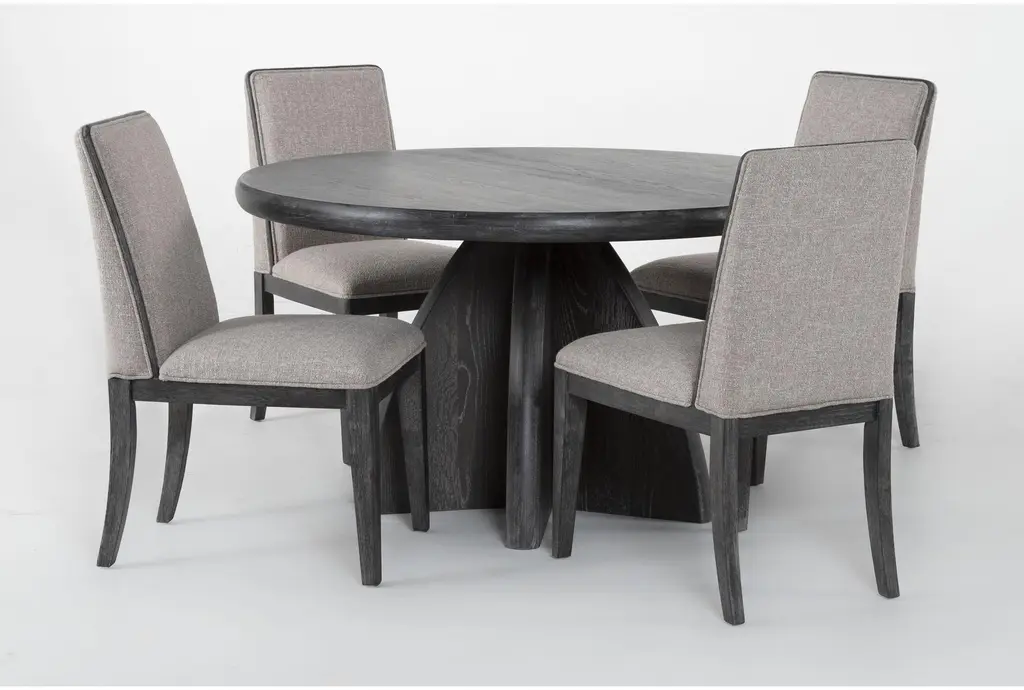 Astra Black Wood 54" Round Dining With Grey Upholstered Fabric Chair Set For 4