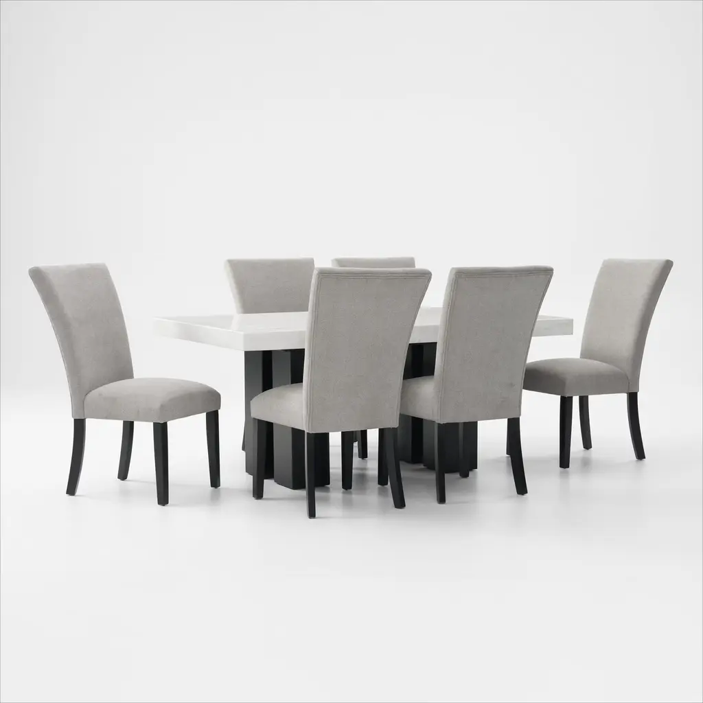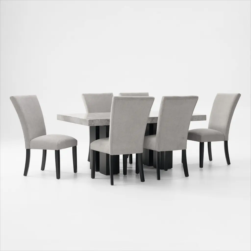 Like contemporary works of art you can't help but admire, our Astra dining set offers unique and eye-catching designs that will be the toast of your space. Striking and sculptural, the curved silhouettes boast a futuristic modern look – perfect for capturing attention and starting conversation. A combination of hardwood and oak veneer grounds the pieces with solid, sturdy materials, while the chair's performance fabric offers durability.