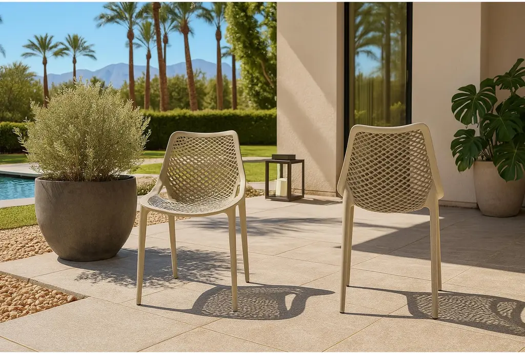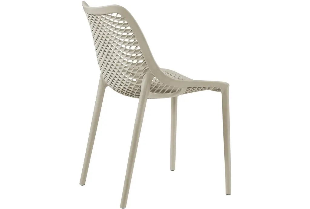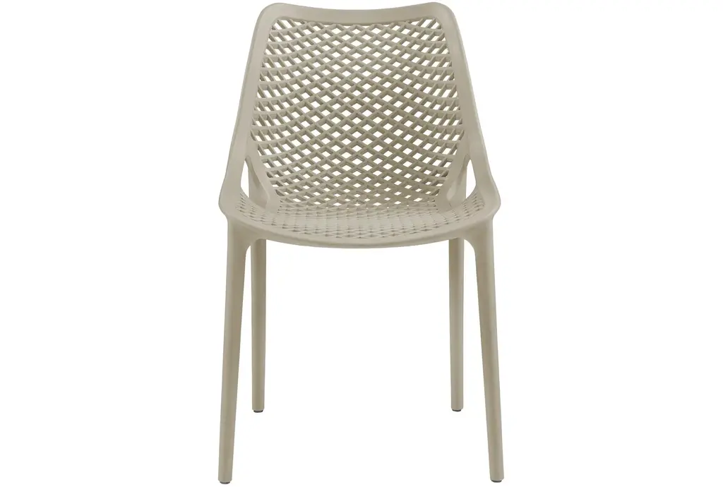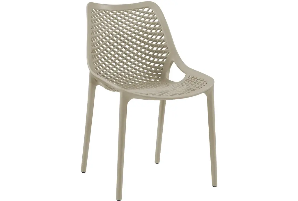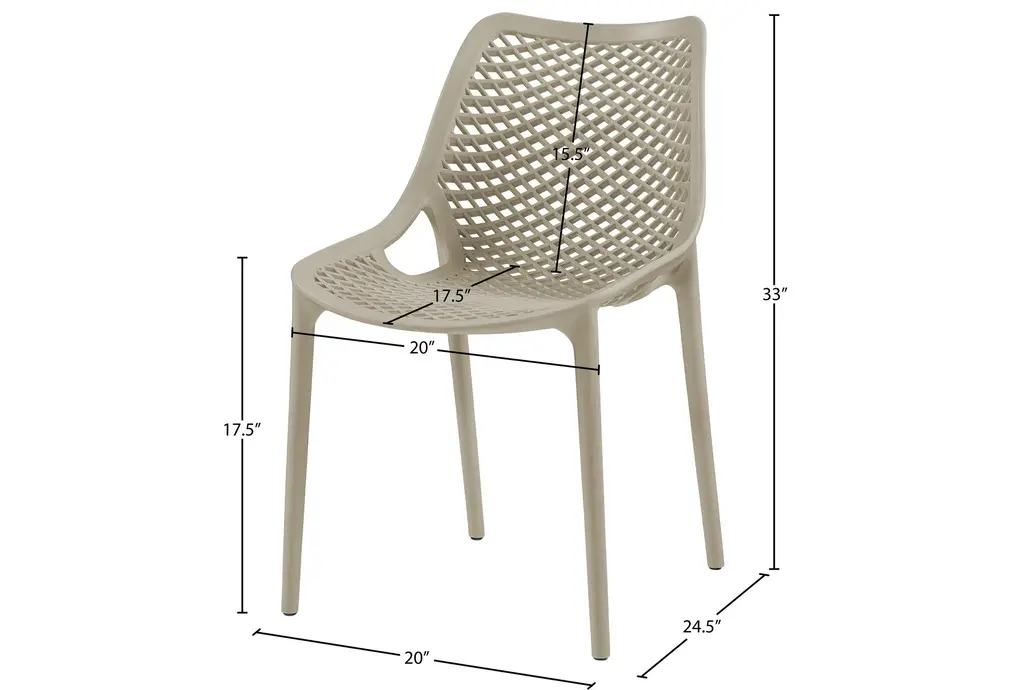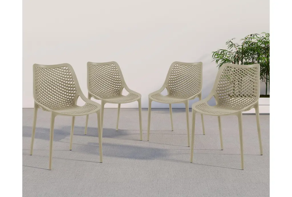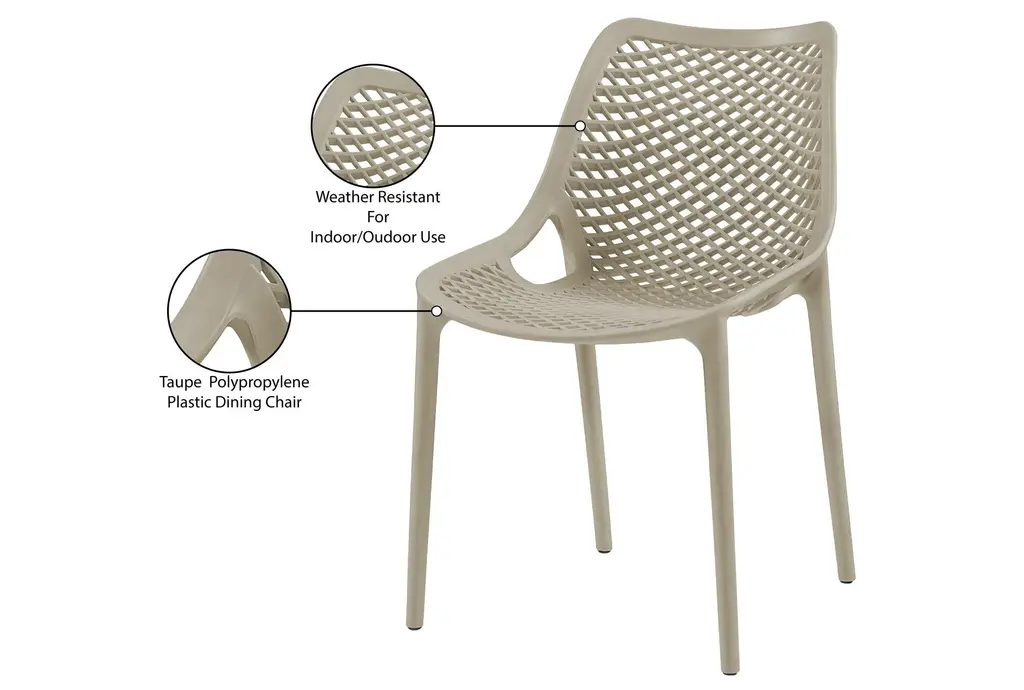 Enhance your outdoor dining experience with the Atlas Taupe Outdoor Patio Dining Chair Set of 4. This modern set features a sleek design and a neutral taupe color, perfectly suited for any outdoor setting. Made from durable polypropylene plastic, these chairs are weather resistant, ensuring they stay looking great season after season.