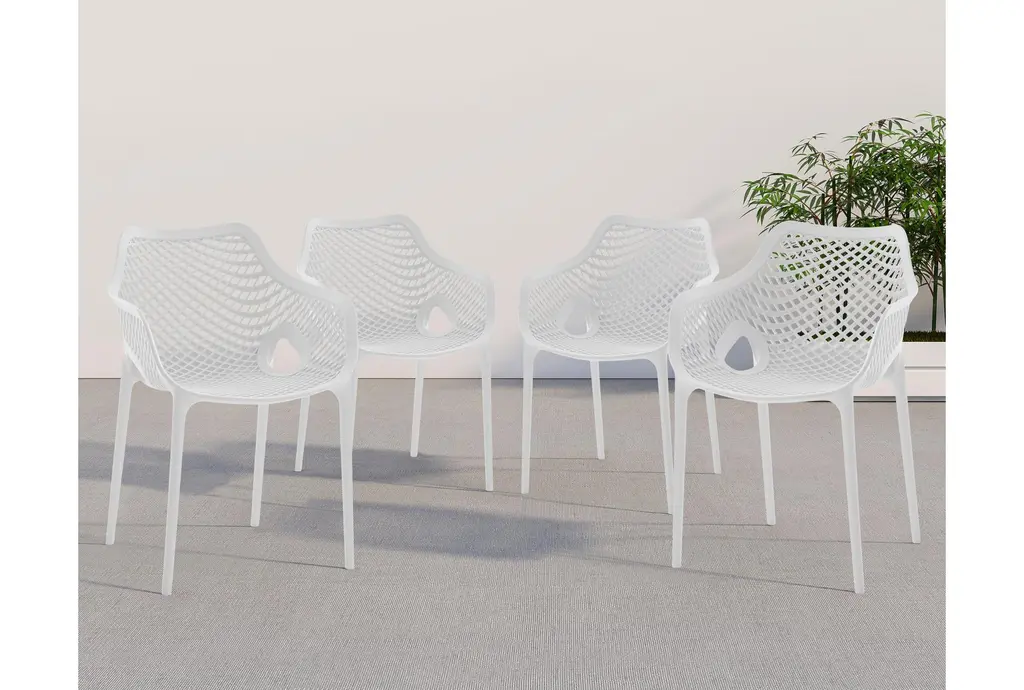 Atlas White Outdoor Patio Dining Chair Set Of 4 | Stackable