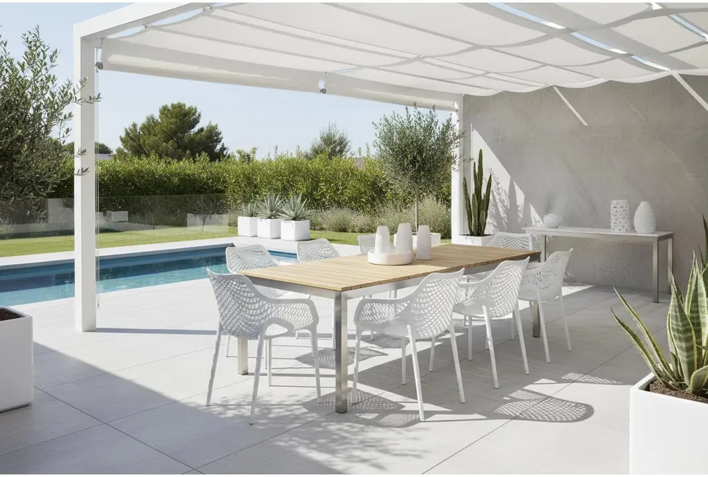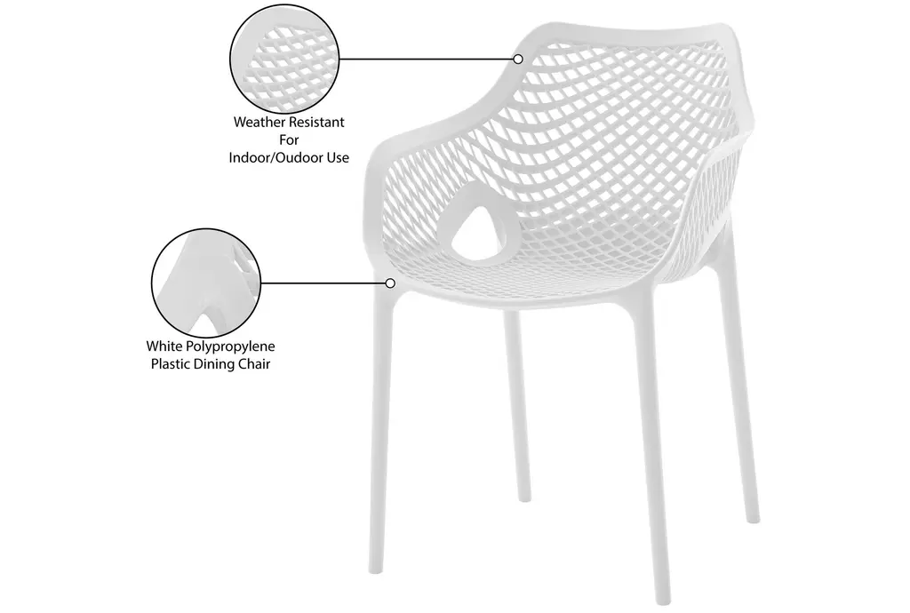 Enhance your outdoor dining experience with the Atlas White Outdoor Patio Dining Chair Set of 4. These modern chairs are perfect for any patio, terrace, or veranda, offering both style and functionality. Their sleek design and polypropylene plastic material make them a durable choice for outdoor settings.