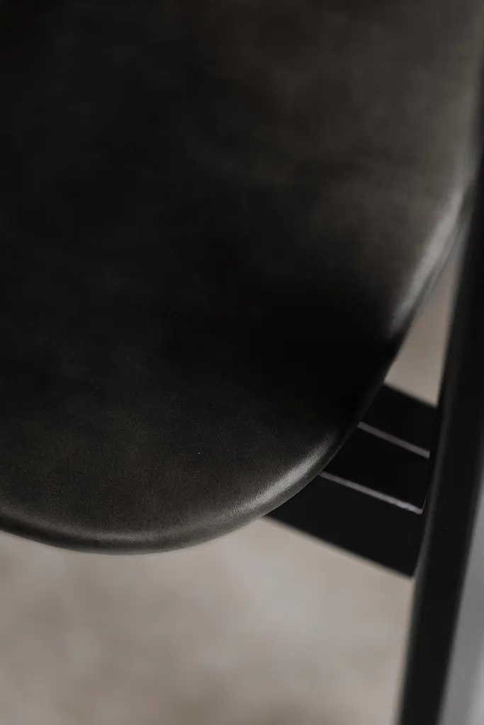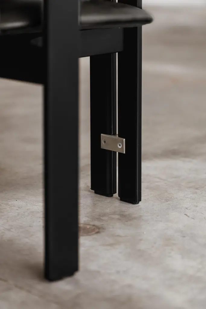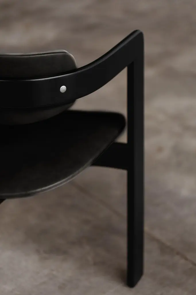 Augusto Savini “Pamplona” dining chairs for Pozzi, black framework and black leather, Italy, 1965, set of six.In the realm of Italian craftsmanship, the Pamplona chairs by Augusto Savini for Pozzi stand as a symbol of architectural elegance. Crafted in 1965, the design of this classy chair echoes the magnetism of mid-century aesthetics. Reminiscent of the iconic “Pigreco” chair by Afra & Tobia Scarpa, yet uniquely distinctive in its own right, these chairs captivate with their originality and meticulous craftsmanship. Constructed from black ashwood and adorned with supple leather in a rich shade of light brown. The aluminum elements in the back represent a distinctive detail, enhancing the personality of these chairs. With clean lines and bold contrasts, they illustrate the harmonious blend of wood and leather, creating a statement piece that transcends mere furniture.We offer custom restoration on request. Our atelier enhances Italy's excellence by providing dedicated and tailor-made customization services. Contact us for additional information.