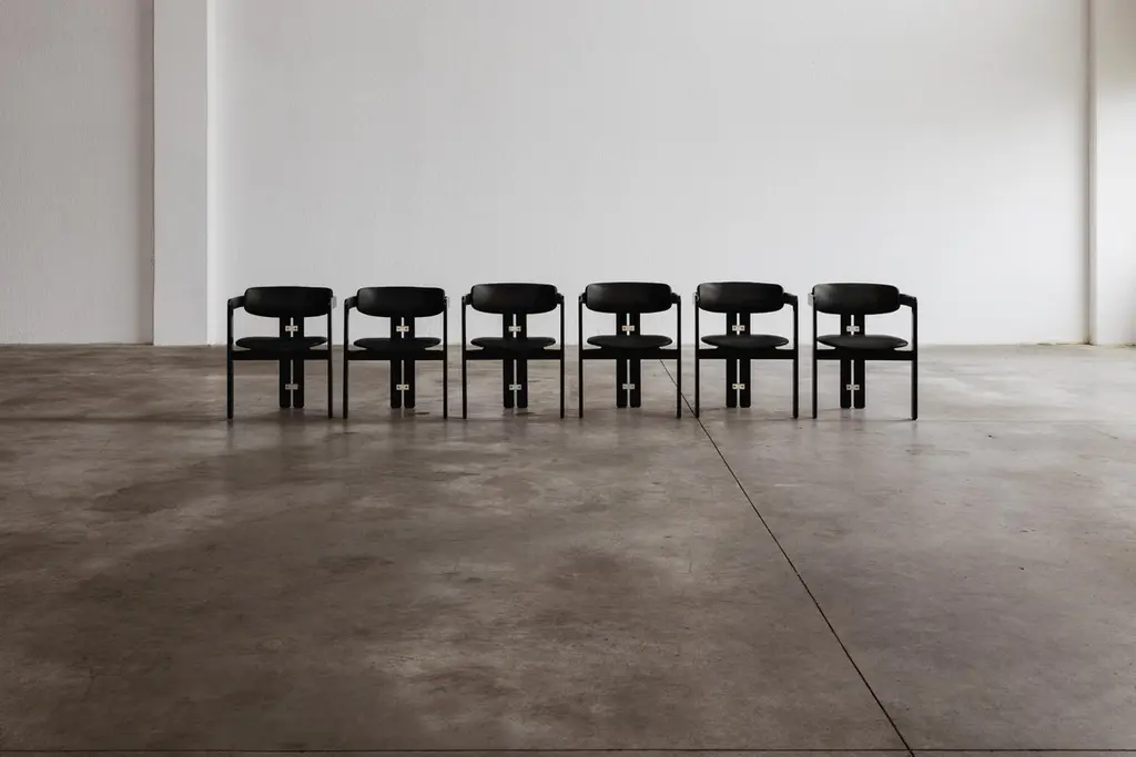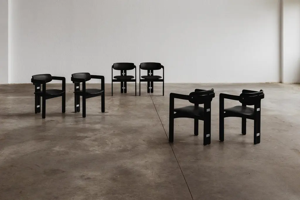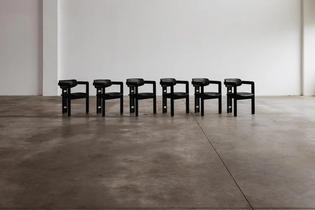 Augusto Savini “Pamplona” Dining Chairs For Pozzi, Total Black, 1965, Set Of 6