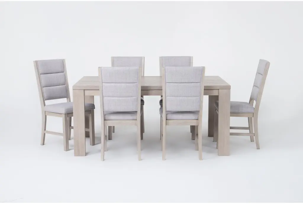 Elevate your dining experience with the Aysha Natural Wood 65" Rectangular Dining With Bench Set For 6. Designed in a modern style, this set features a stunning grey finish that complements any dining room or kitchen space. The sturdy construction of rubberwood and ash veneer MDF ensures durability and a timeless appeal.