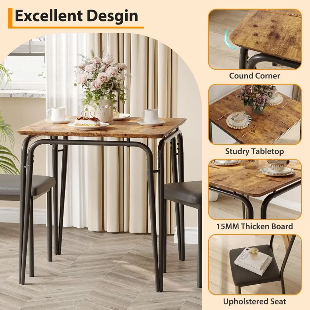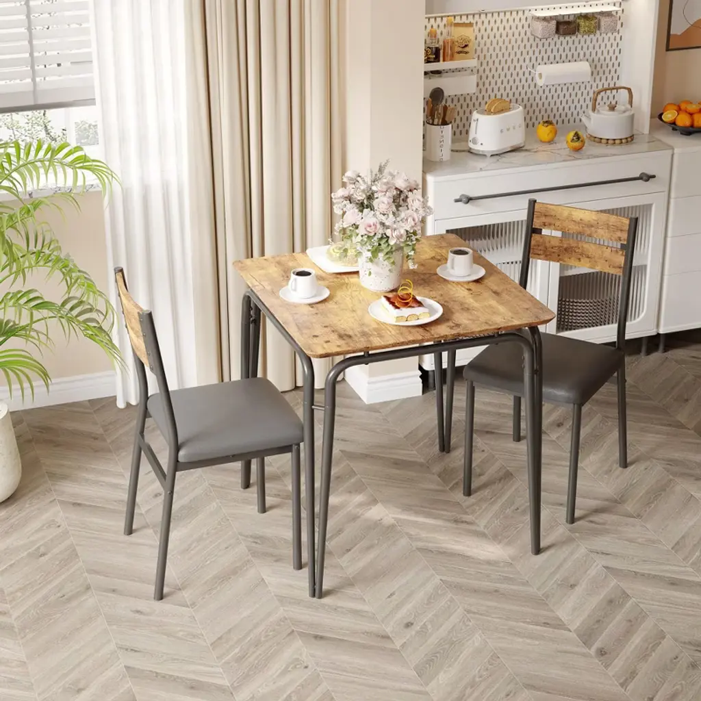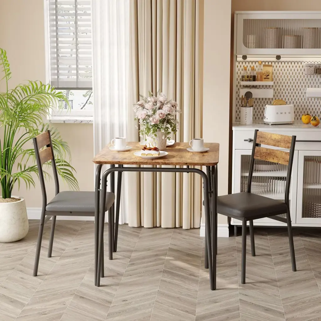 Introducing our Backrest Dining Table and Chairs Set, the perfect addition to your kitchen or dining room. This modern kitchen table set includes one durable dining table and two comfortable dining chairs, designed to enhance your dining experience while saving space.Crafted from high-quality MDF material, this dining set offers exceptional durability and easy maintenance, making it ideal for everyday use. The sleek and modern design fits seamlessly into any kitchen or dining room decor, providing a stylish yet functional space for meals, gatherings, or casual conversations.Key Features:- Space-Saving Design: Compact yet spacious enough to accommodate two people comfortably, perfect for smaller kitchens or dining areas.- Durable MDF Material: Ensures long-lasting strength and stability while being easy to clean and maintain.- Comfortable Backrest Chairs: Designed to provide excellent support for extended dining sessions.- Versatile Use: Ideal for kitchen dining, breakfast nooks, or as a casual dining area in your home.- Modern Aesthetic: Clean lines and neutral tones complement a variety of interior styles.Upgrade your dining space with this Backrest Dining Table and Chairs Set, combining practicality and style for a cozy and inviting atmosphere. Whether you're enjoying a quick breakfast or a leisurely dinner, this set is designed to meet your needs with comfort and elegance.