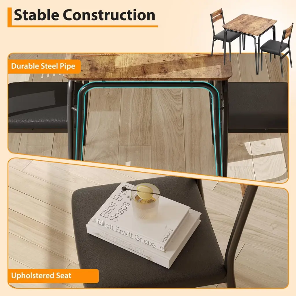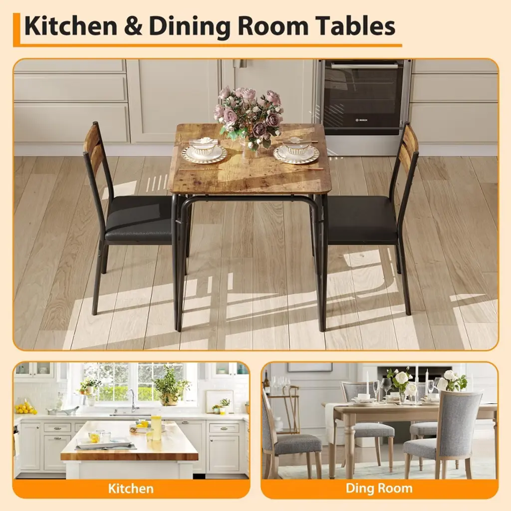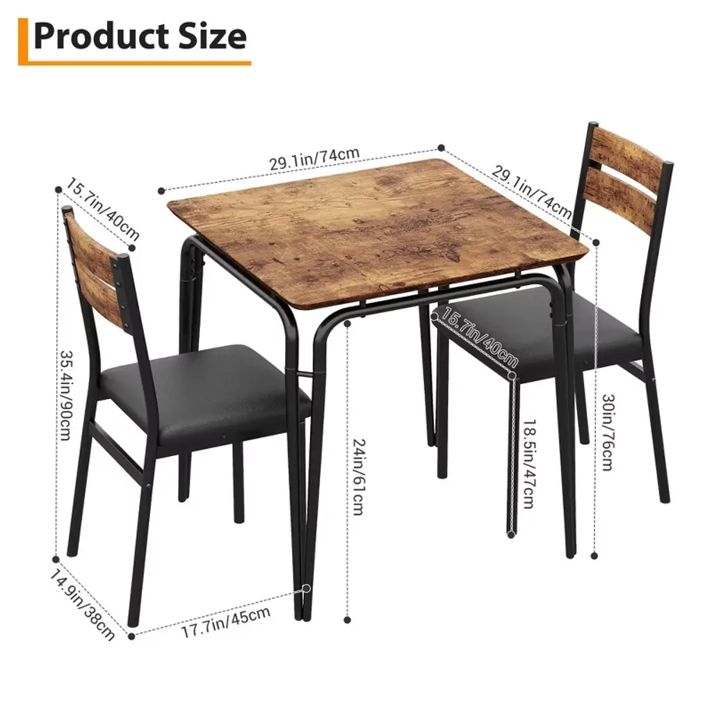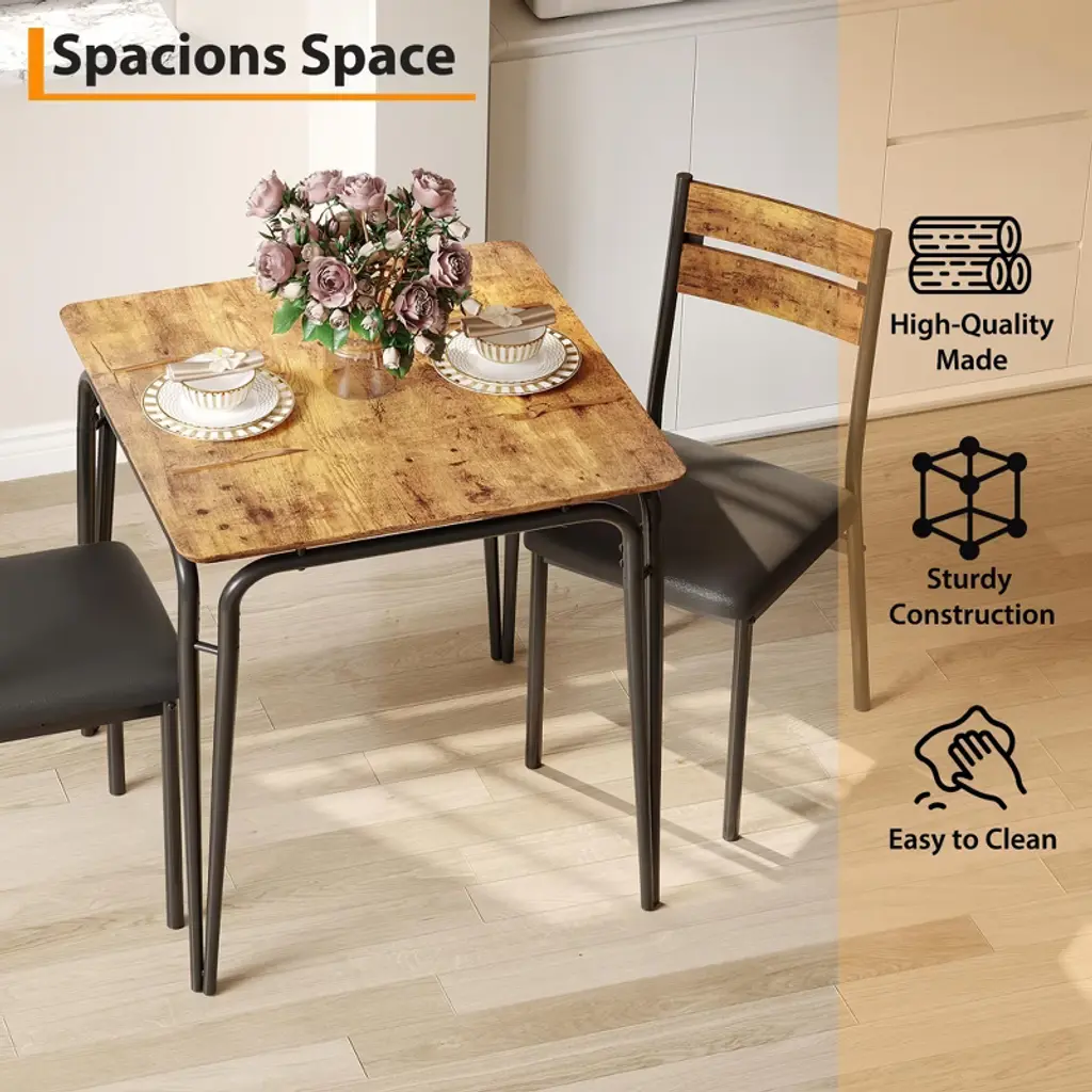Introducing our Backrest Dining Table and Chairs Set, the perfect addition to your kitchen or dining room. This modern kitchen table set includes one durable dining table and two comfortable dining chairs, designed to enhance your dining experience while saving space.Crafted from high-quality MDF material, this dining set offers exceptional durability and easy maintenance, making it ideal for everyday use. The sleek and modern design fits seamlessly into any kitchen or dining room decor, providing a stylish yet functional space for meals, gatherings, or casual conversations.Key Features:- Space-Saving Design: Compact yet spacious enough to accommodate two people comfortably, perfect for smaller kitchens or dining areas.- Durable MDF Material: Ensures long-lasting strength and stability while being easy to clean and maintain.- Comfortable Backrest Chairs: Designed to provide excellent support for extended dining sessions.- Versatile Use: Ideal for kitchen dining, breakfast nooks, or as a casual dining area in your home.- Modern Aesthetic: Clean lines and neutral tones complement a variety of interior styles.Upgrade your dining space with this Backrest Dining Table and Chairs Set, combining practicality and style for a cozy and inviting atmosphere. Whether you're enjoying a quick breakfast or a leisurely dinner, this set is designed to meet your needs with comfort and elegance.