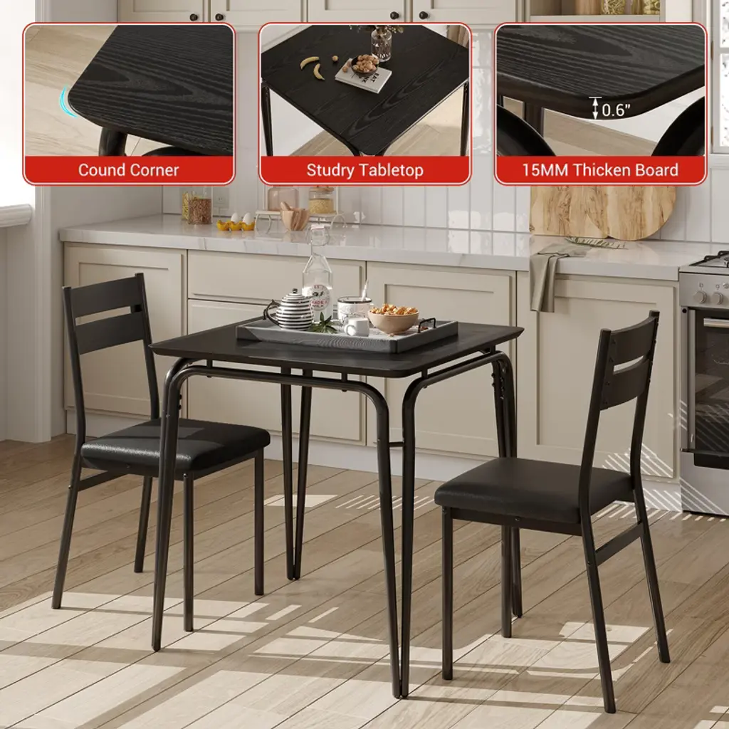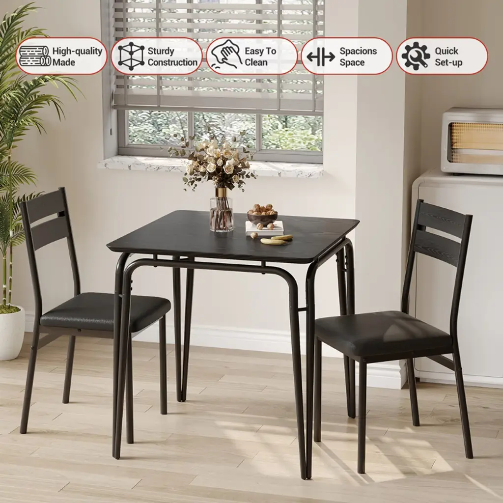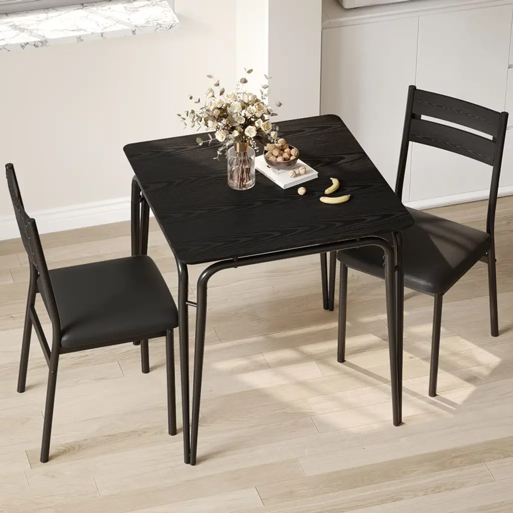 Introducing our Backrest Dining Table and Chairs Set, the perfect addition to your kitchen or dining room. This modern kitchen table set includes one durable dining table and two comfortable dining chairs, designed to enhance your dining experience while saving space.Crafted from high-quality MDF material, this dining set offers exceptional durability and easy maintenance, making it ideal for everyday use. The sleek and modern design fits seamlessly into any kitchen or dining room decor, providing a stylish yet functional space for meals, gatherings, or casual conversations.Key Features:- Space-Saving Design: Compact yet spacious enough to accommodate two people comfortably, perfect for smaller kitchens or dining areas.- Durable MDF Material: Ensures long-lasting strength and stability while being easy to clean and maintain.- Comfortable Backrest Chairs: Designed to provide excellent support for extended dining sessions.- Versatile Use: Ideal for kitchen dining, breakfast nooks, or as a casual dining area in your home.- Modern Aesthetic: Clean lines and neutral tones complement a variety of interior styles.Upgrade your dining space with this Backrest Dining Table and Chairs Set, combining practicality and style for a cozy and inviting atmosphere. Whether you're enjoying a quick breakfast or a leisurely dinner, this set is designed to meet your needs with comfort and elegance.