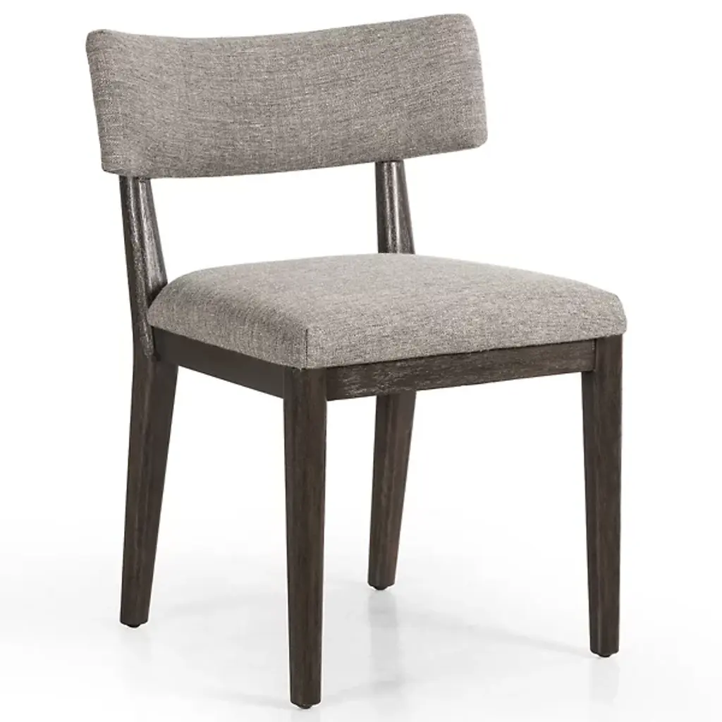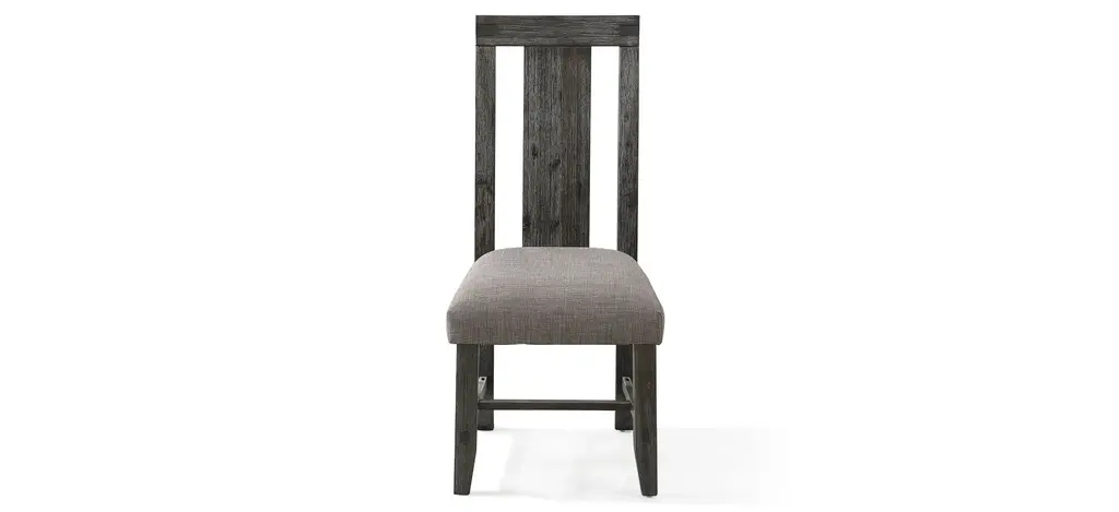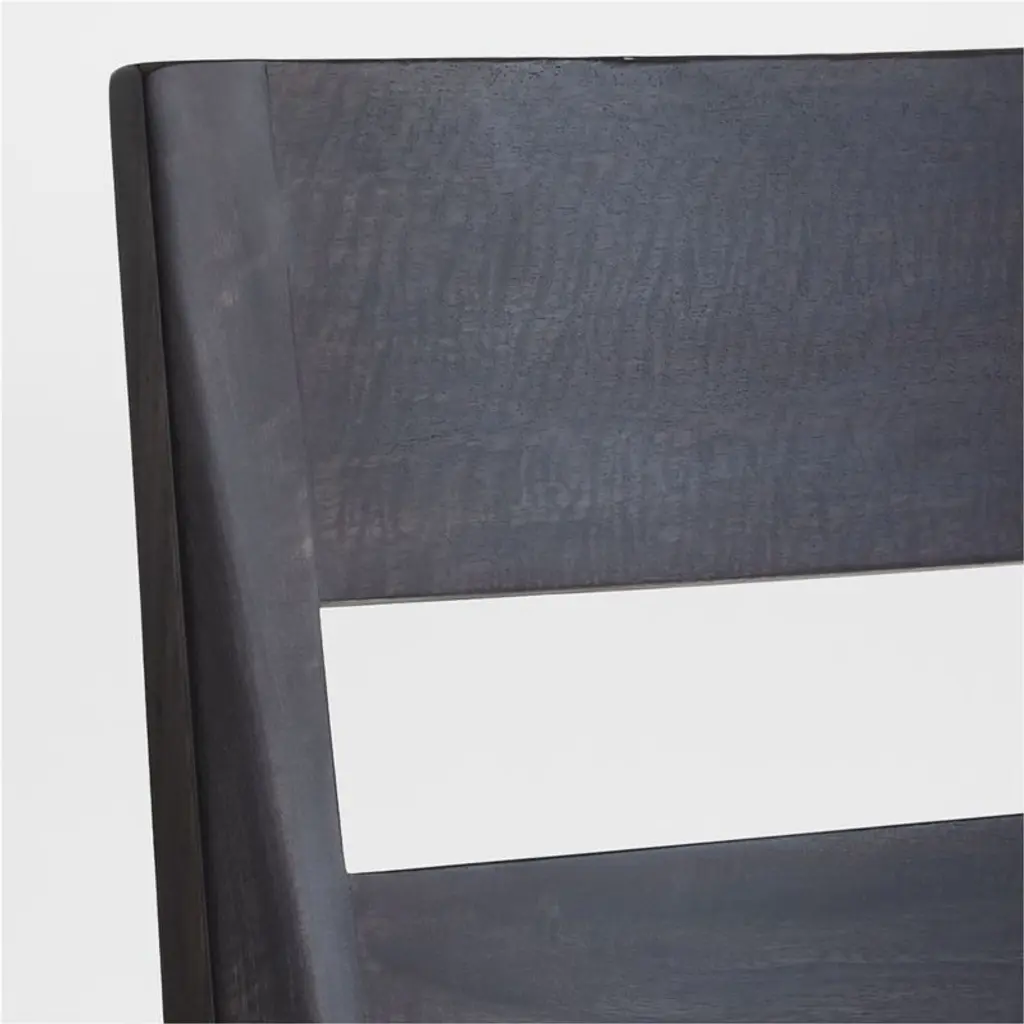 Basque recalls the heft and character of a European farmhouse antique with a charcoal grey stain to make it modern. Made of renewable mango wood from trees no longer producing fruit, the simple and rustic dining chairs are crafted with modified double-slat backs and hand-planed. The four Basque side chairs pulls up to the table with generous proportions, tall backs and deep, comfortable seats. Coordinating navy blue cushions provide added comfort and a dose of color.