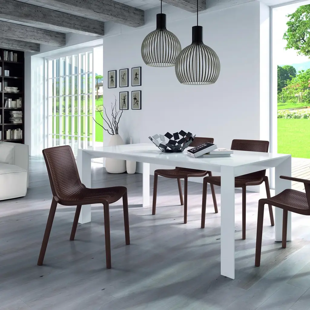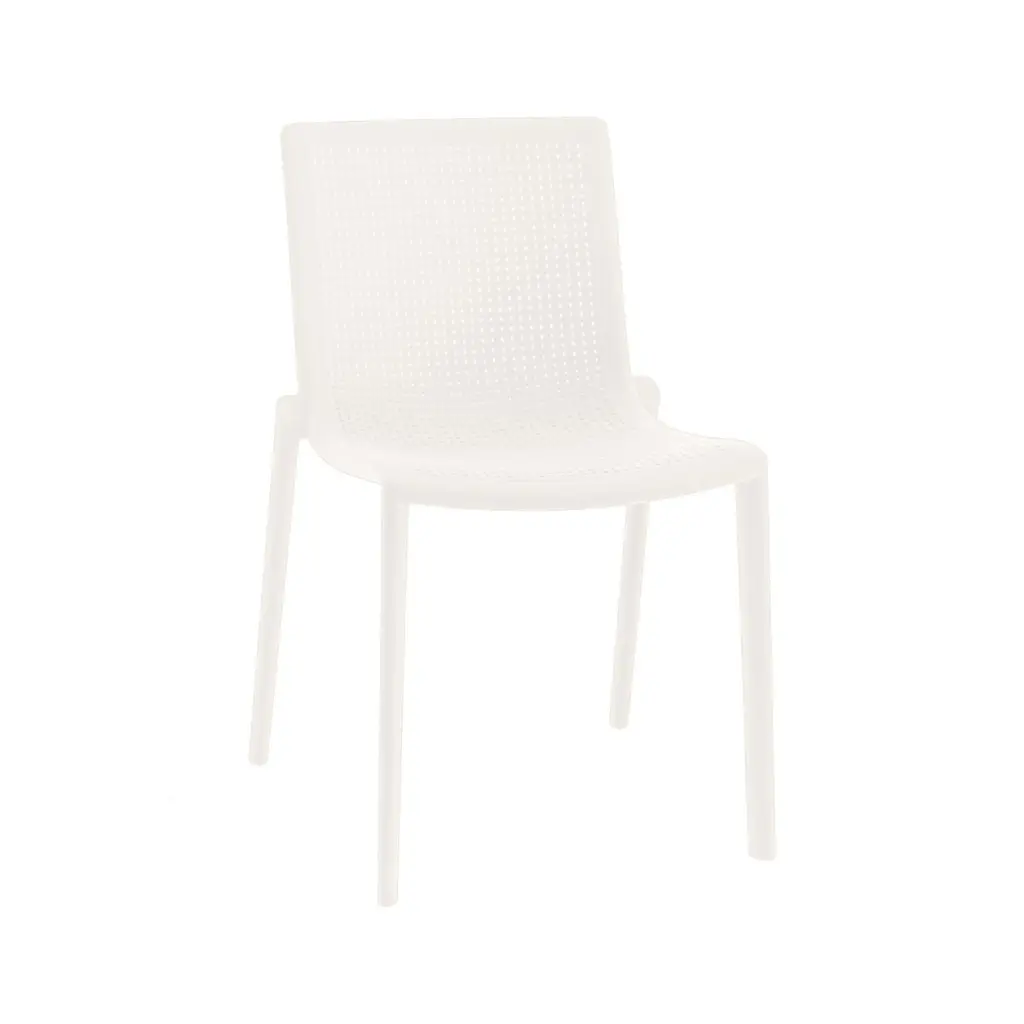 The Beekat Stacking Dining Chair (Set of 4) from Resol advances the Kat-Netkat design by incorporating continuous perforations arranged in a geometric grid, preserving a transparent and lightweight appearance. This design innovation combines visual elegance with practical stackability, making it an excellent choice for contemporary dining spaces seeking both style and functionality. Highlights