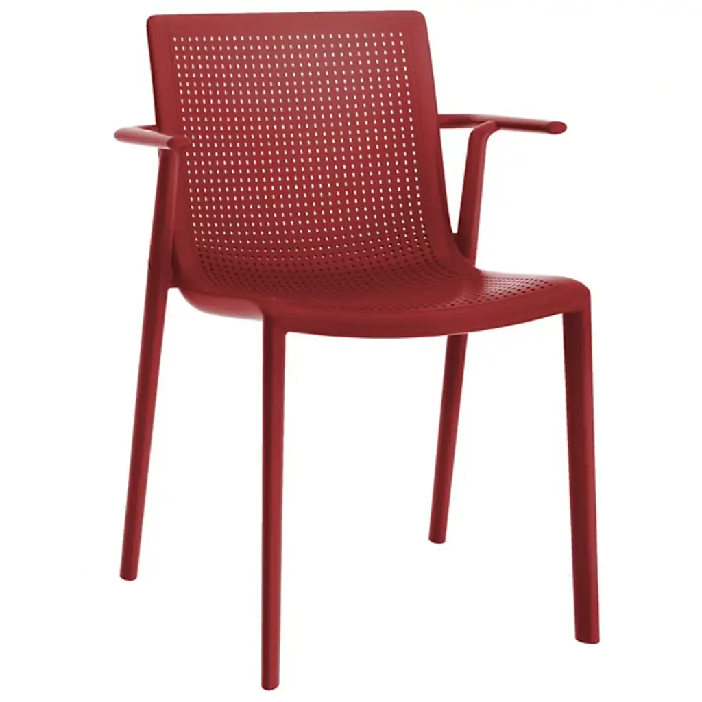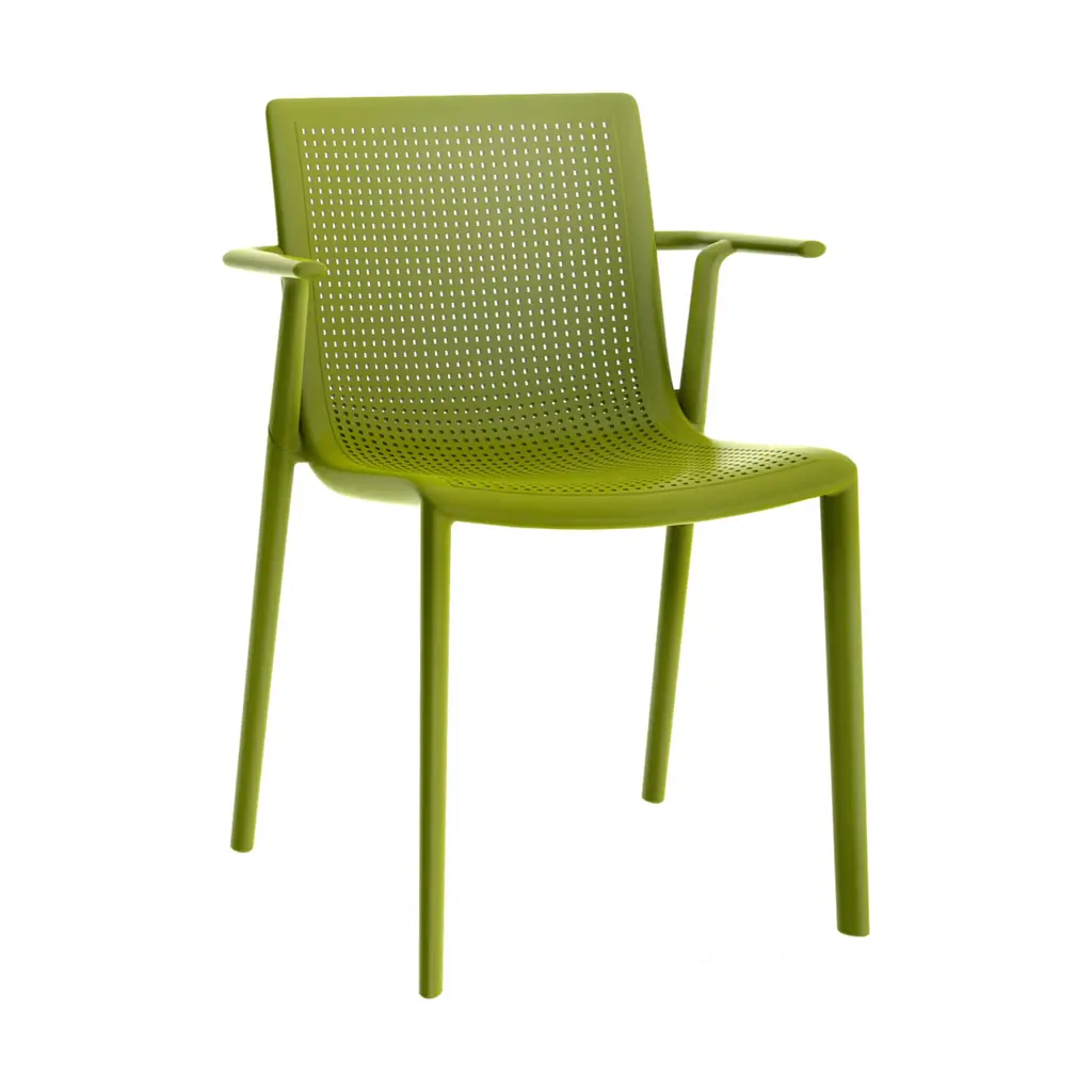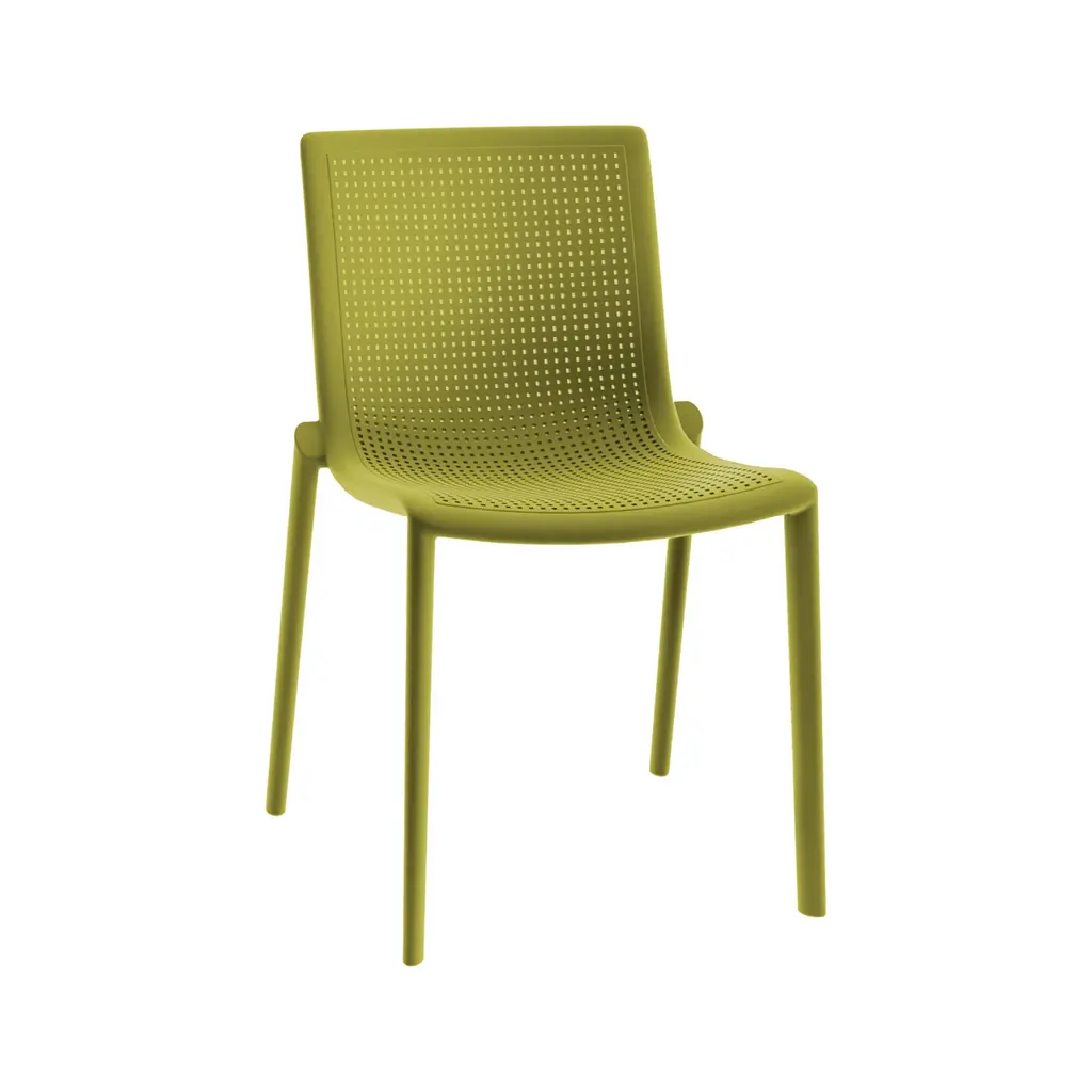 The Beekat Stacking Dining Chair (Set of 4) from Resol advances the Kat-Netkat design by incorporating continuous perforations arranged in a geometric grid, preserving a transparent and lightweight appearance. This design innovation combines visual elegance with practical stackability, making it an excellent choice for contemporary dining spaces seeking both style and functionality. Highlights