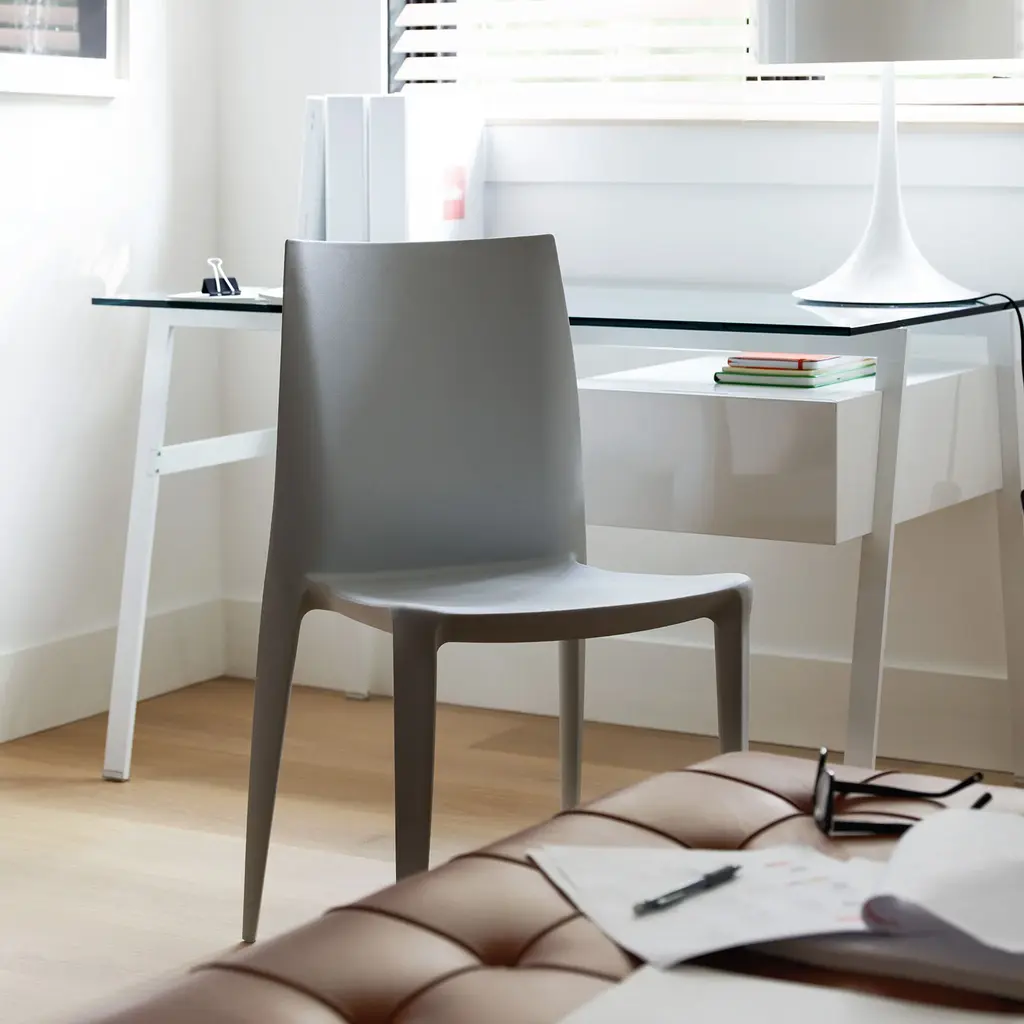 Exceptionally comfortable with a slightly flexible back, this sturdy, stackable, lightweight indoor-outdoor chair is tough enough to withstand use in a busy restaurant and elegant enough to flatter an outdoor patio, sophisticated studio, or home dining room.Originally designed in 1998, it's a gorgeous, comfortable chair that stands the test of time and has inspired countless designers for decades. Stop and admire the sleek, sculptural lines of this modern chair that earned celebrated Italian architect and designer Mario Bellini his eighth Compasso d’Oro award in 2001. Made in USA, this indoor-outdoor chair is stackable up to six high.