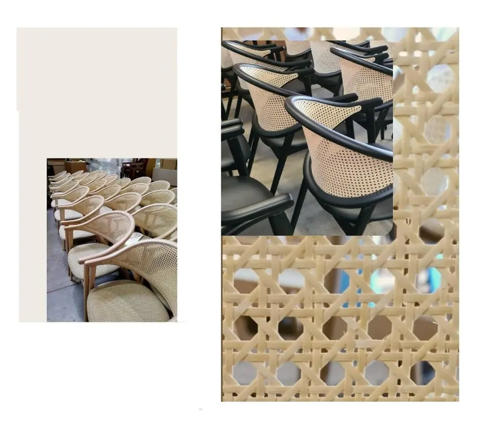 Bent Wood Dining Chair With Rattan Cane Backrest, Set Of 8