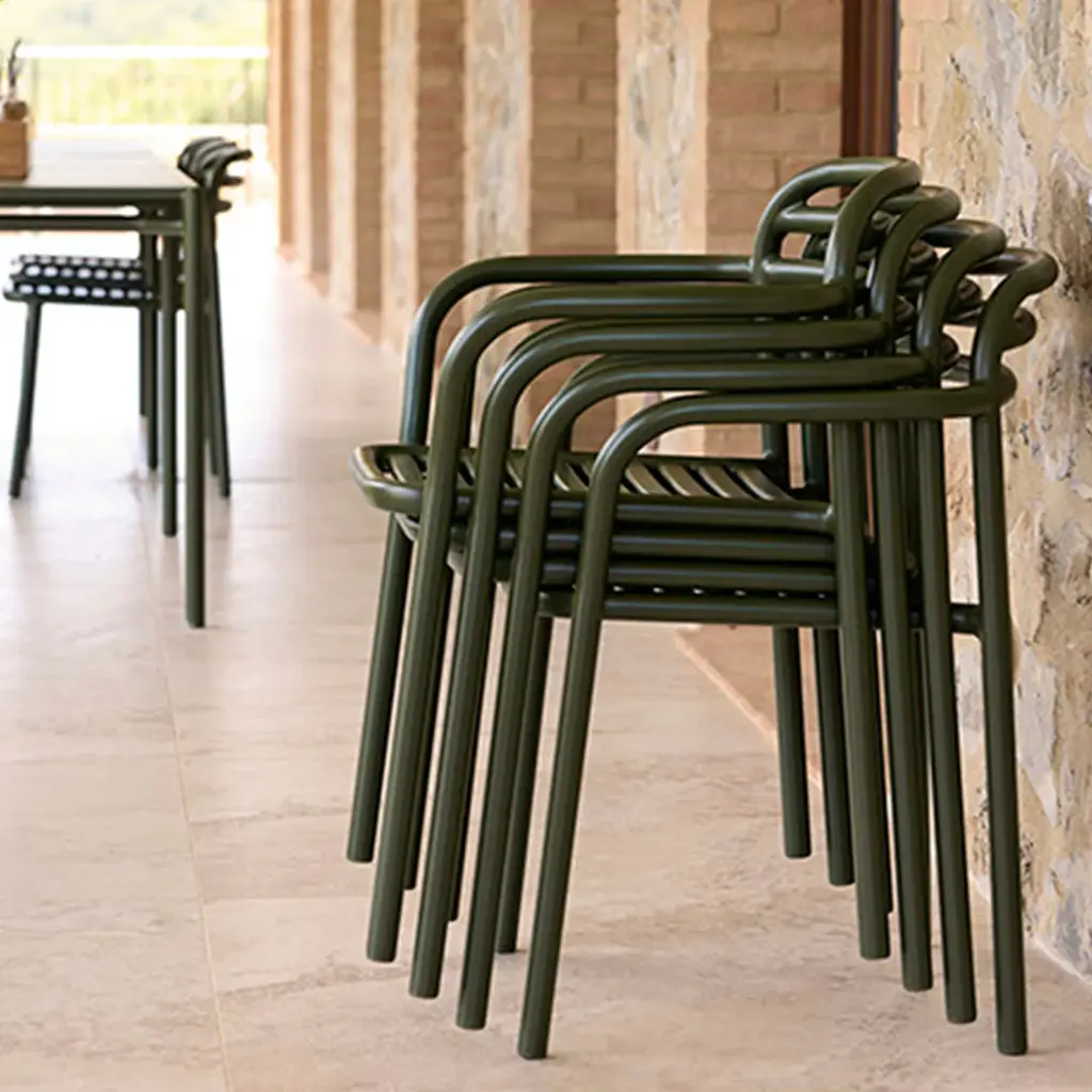 The Bliss dining set offers a sleek, minimalist aesthetic that fits naturally into a variety of outdoor spaces. Made from powder-coated aluminium, Bliss is lightweight, easy to reposition and built to withstand the demands of outdoor use throughout the year, which makes it perfect for patios, garden spaces, and inviting outdoor areas in dining venues. The design provides a spacious, modern look, and the rectangular table creates an inviting base for gatherings, dining and conversations. Use the optional Extension Leaf to extend the table and customize the dining set extra seating. Available in a selection of timeless colors, the Bliss dining set brings both sophistication and versatility, easily complementing any outdoor decor. Bliss is designed by Foersom & Hiort-Lorenzen MDD. Dining Set Includes: [1] Rectangular Dining table [4] Armchairs