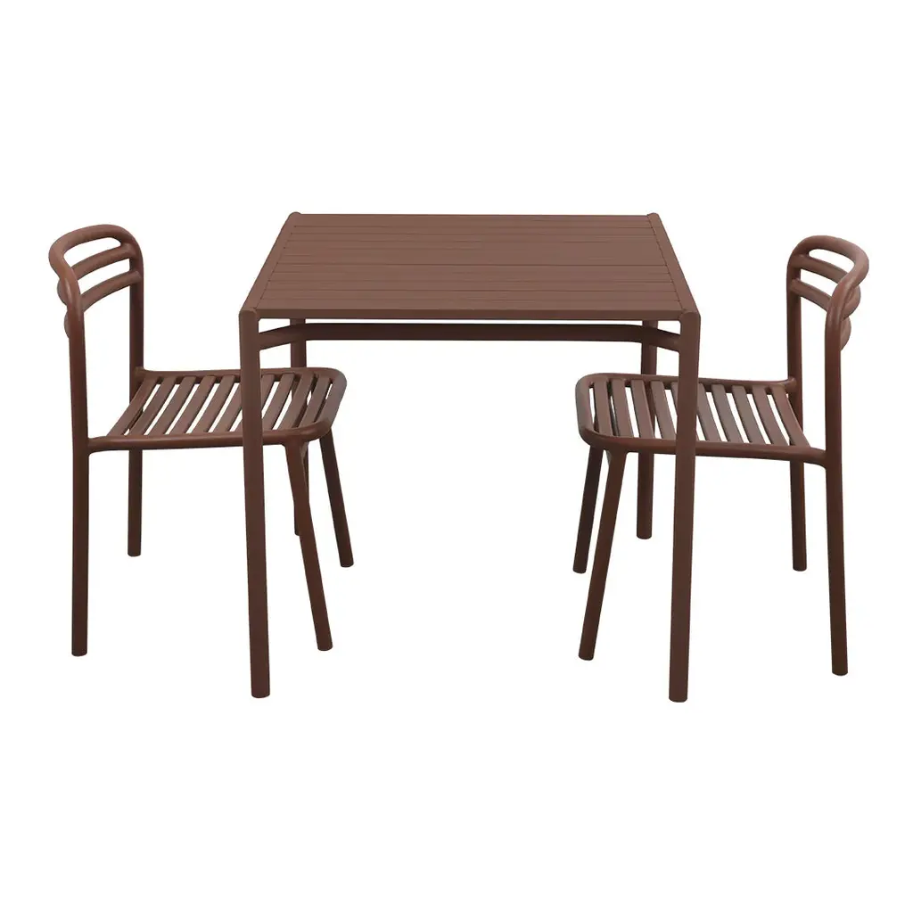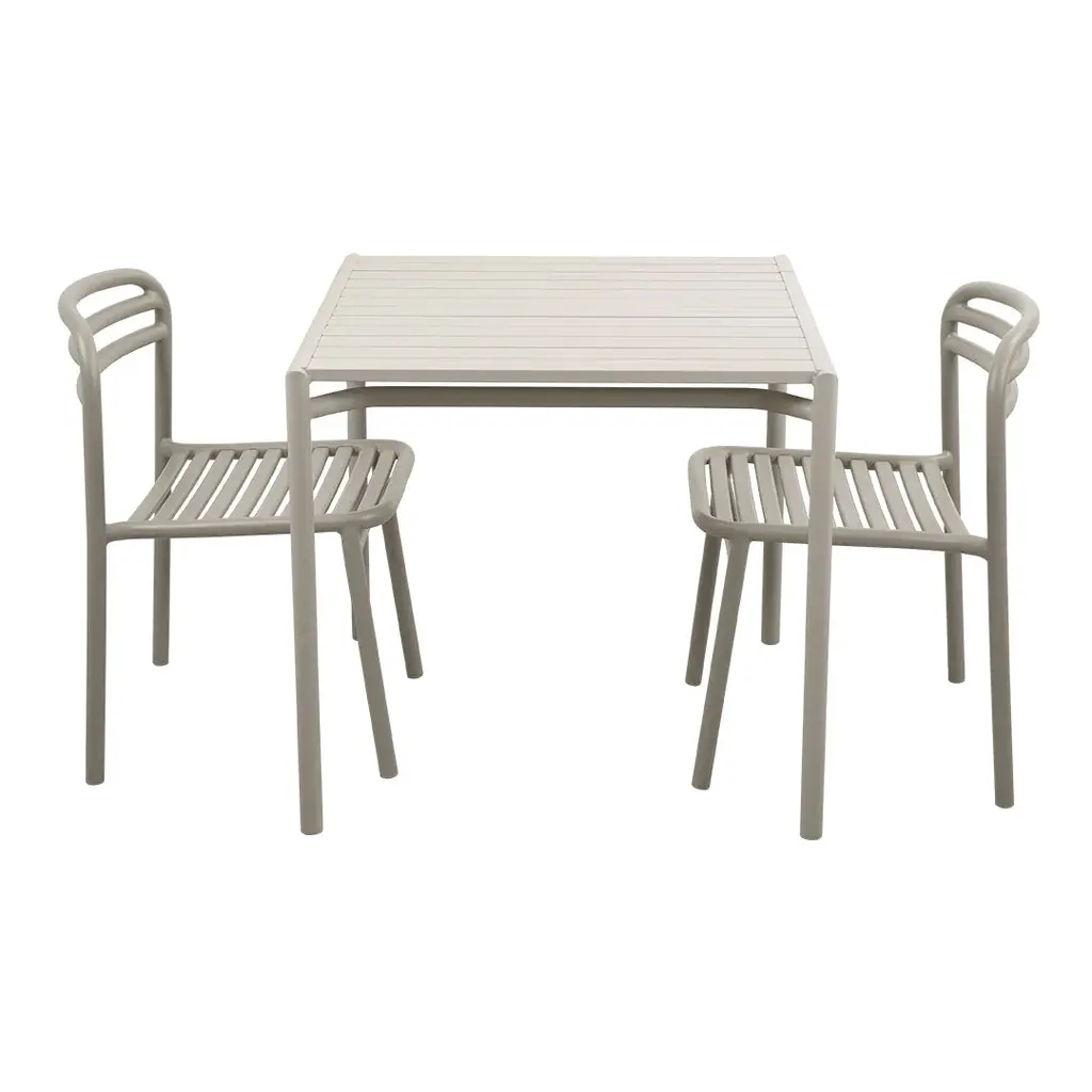 The Bliss dining set offers a sleek, minimalist aesthetic that fits naturally into a variety of outdoor spaces. Made from powder-coated aluminium, Bliss is lightweight, easy to reposition and built to withstand the demands of outdoor use throughout the year, which makes it perfect for patios, garden spaces, and inviting outdoor areas in dining venues. The design provides a spacious, modern look, and the rectangular table creates an inviting base for gatherings, dining and conversations. Use the optional Extension Leaf to extend the table and customize the dining set extra seating. Available in a selection of timeless colors, the Bliss dining set brings both sophistication and versatility, easily complementing any outdoor decor. Bliss is designed by Foersom & Hiort-Lorenzen MDD. Dining Set Includes: [1] Square Dining table [2] Side Chairs