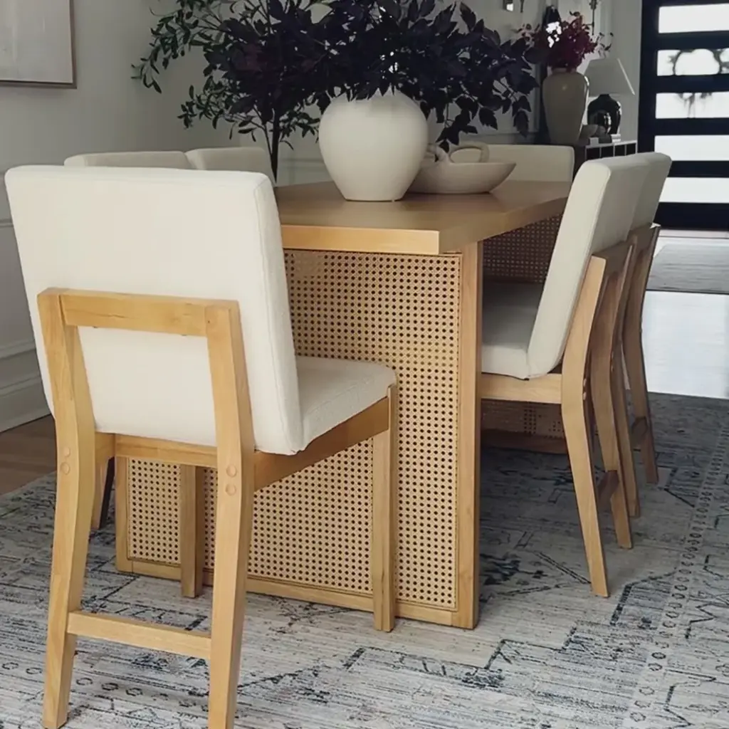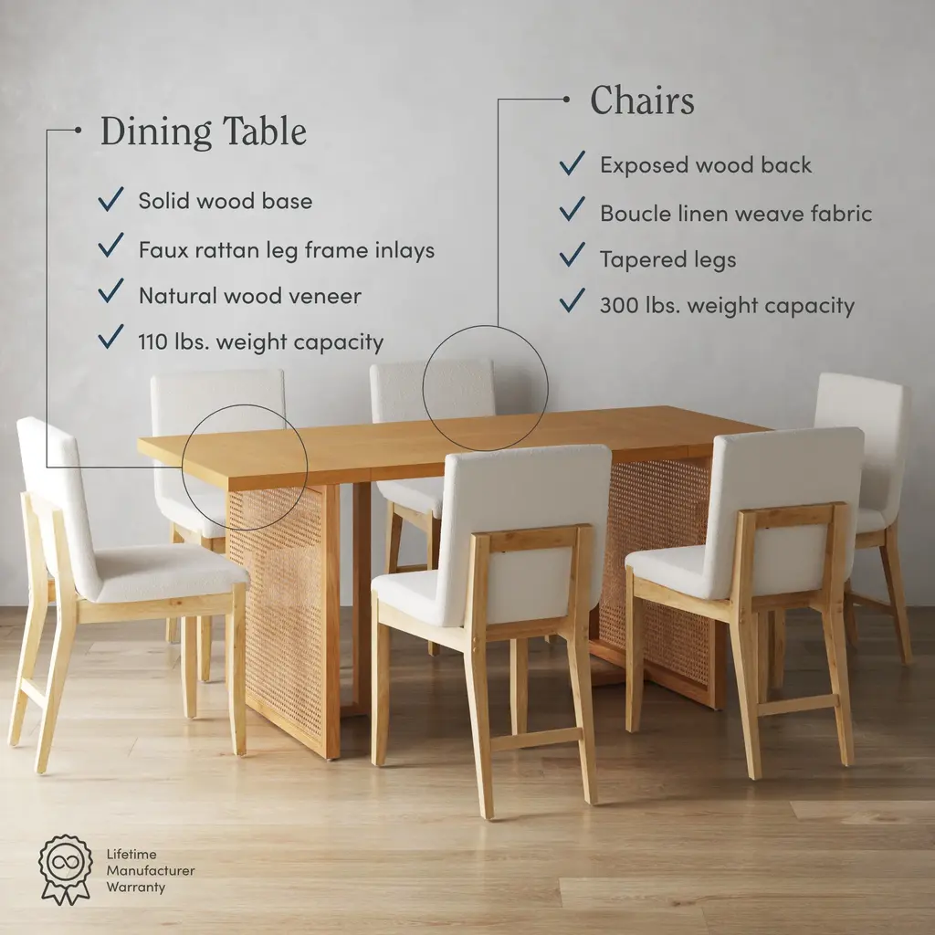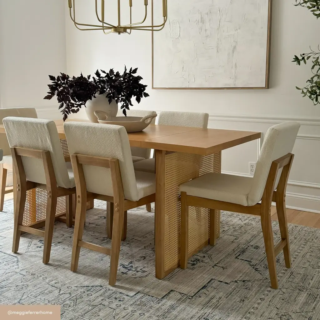 Bohemian Wood & Boucle Dining Set (6 Chairs)