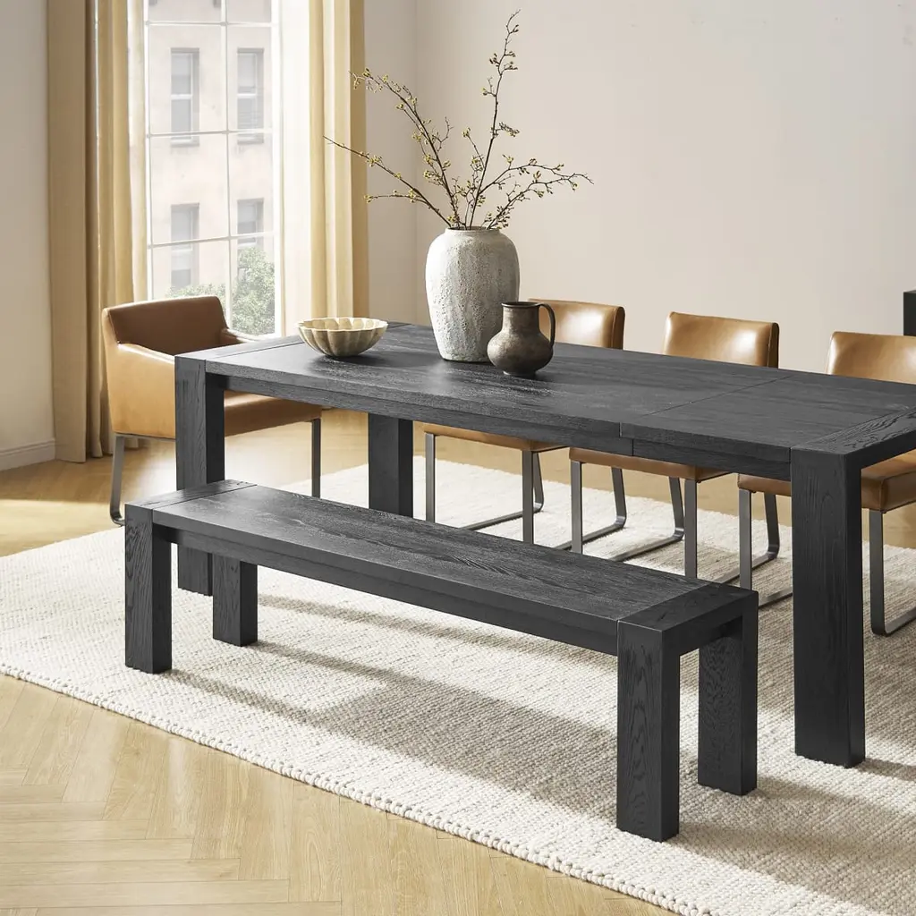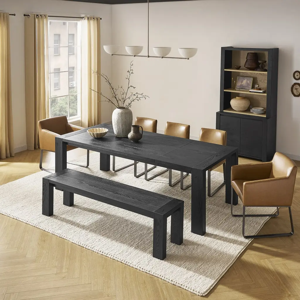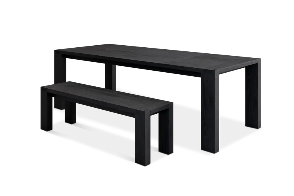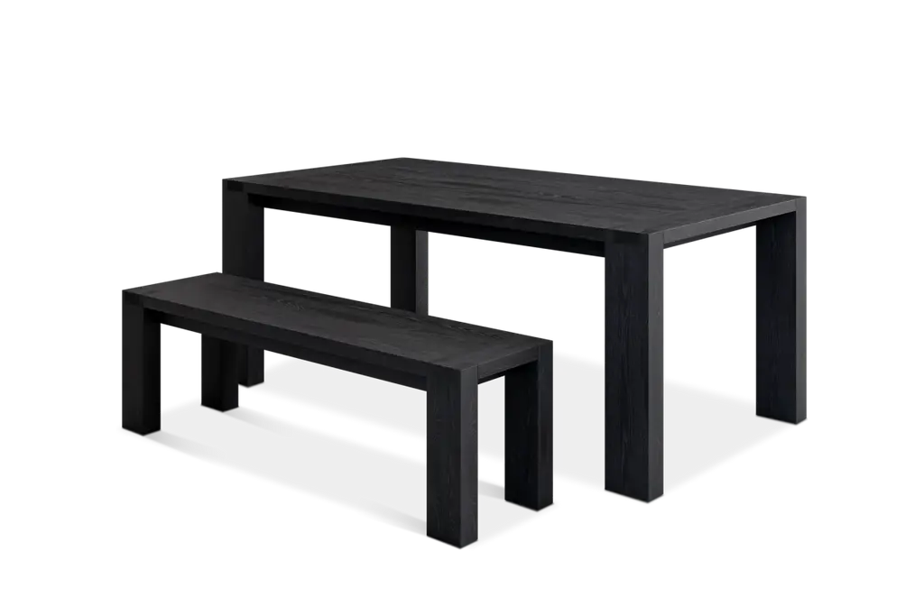 With an angular silhouette and legs that intersect the slab top, Bradley celebrates the beauty of wood's natural grain and knots.