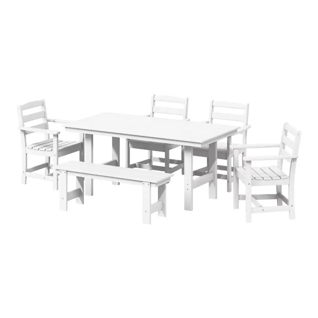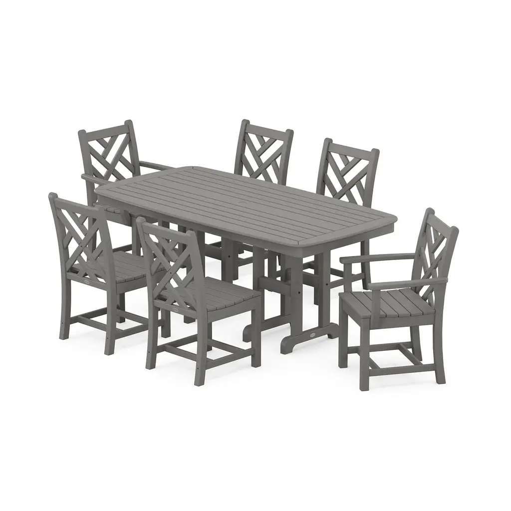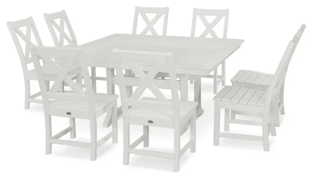 Entertain in style with the POLYWOOD Braxton 9-Piece Nautical Trestle Dining Set. Your guests will find comfort in the charming Braxton Dining Side Chairs, and there will be no shortage of tablespace thanks to the Nautical Trestle 59" Dining Table. Go ahead, impress your guests with that lavish dinner you've been dying to make. The Braxton 9-Piece Nautical Trestle Dining Set is stylish and sturdy and will meet all your outdoor dining demands.