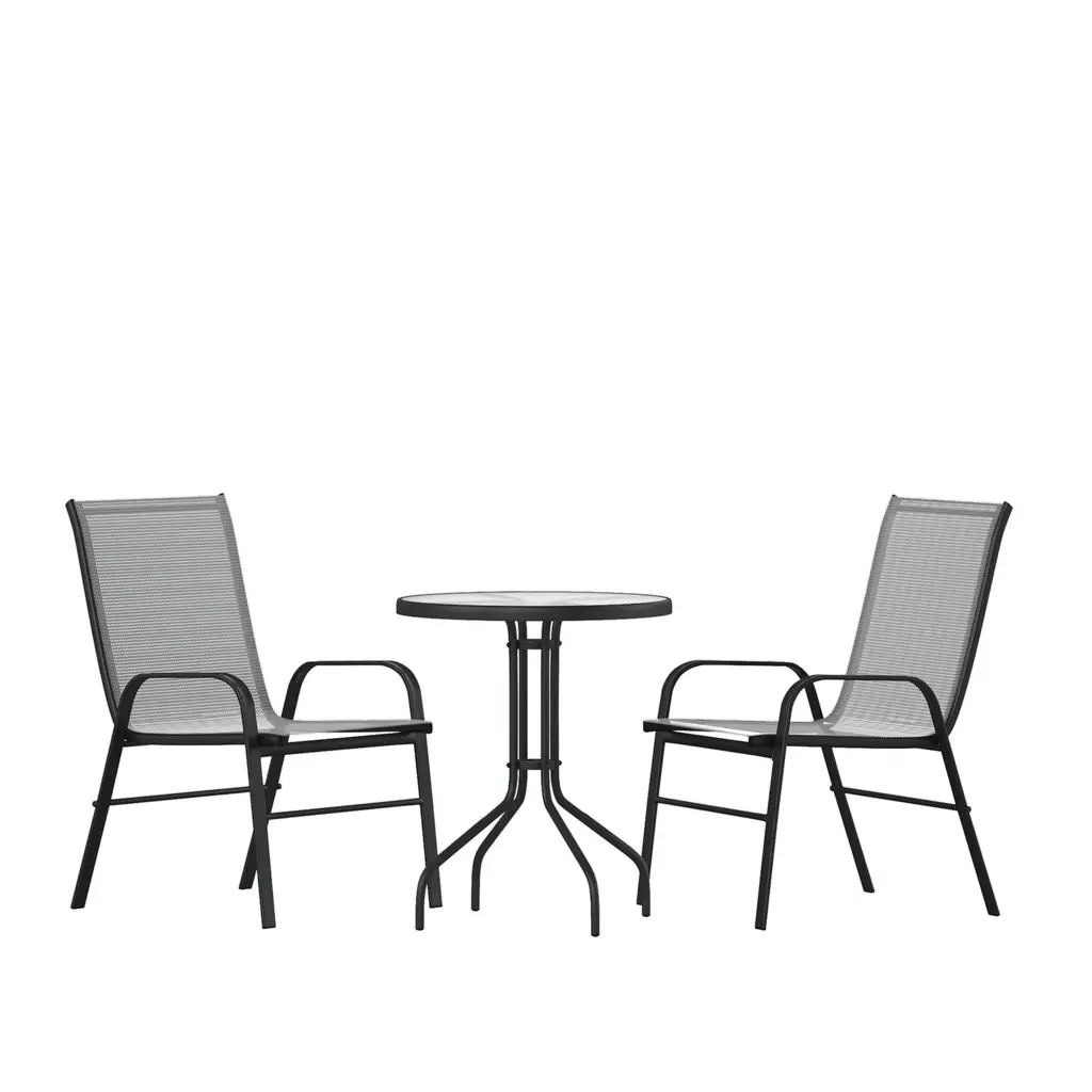 Brazos 3 Piece Outdoor Patio Dining Set - Tempered Glass Patio Table, 2 Flex Comfort Stack Chairs