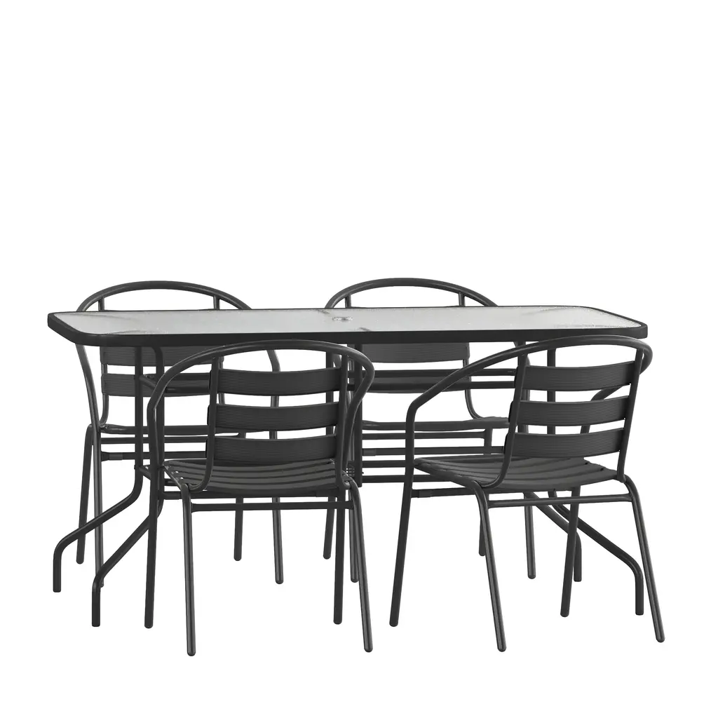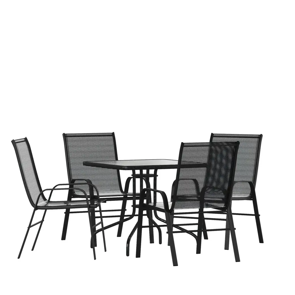 Brazos 5 Piece Outdoor Patio Dining Set - Tempered Glass Patio Table, 4 Flex Comfort Stack Chairs