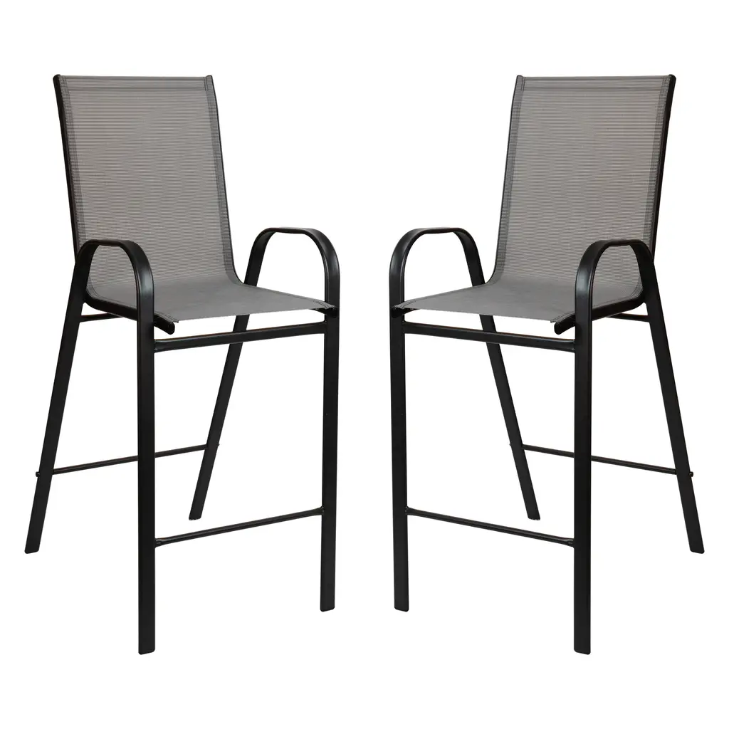 Dine outdoors for breakfast, lunch, and dinner when you have a setting that is just as comfortable as your dining room table. Bar height outdoor table sets add an extra wow factor to your outdoor dining space. The outdoor bistro bar table has attractive bowed legs and glides that protect your flooring when used indoors. Beat the summer heat in the sling style barstools with breathable textilene upholstery. These patio stools allow for easy cleanup after a gathering. The dining stool features a footrest to rest your feet and arms to relieve pressure from your upper body. This pub bar table set adds the perfect companionship to your patio, deck, sunroom, balcony, or pool area.