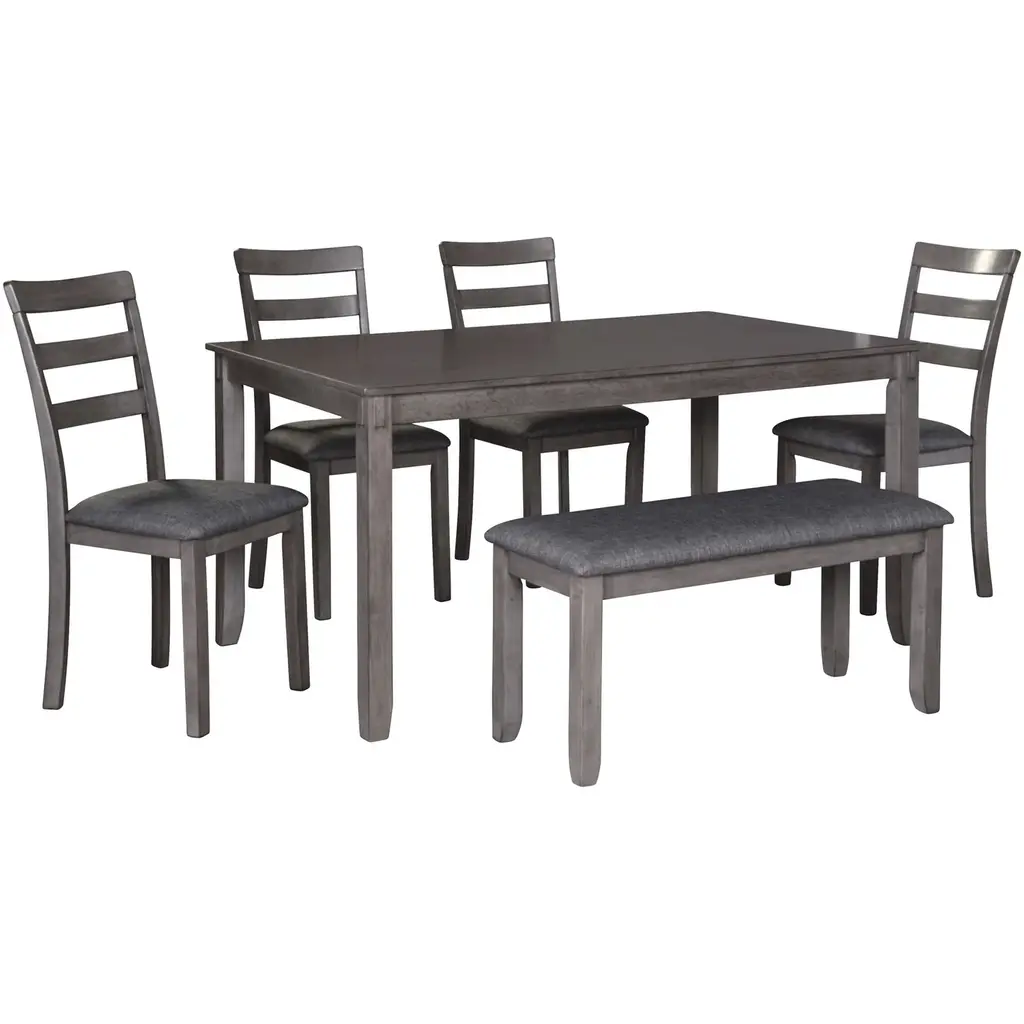 Looking for a dining set for a small space? Even if not, consider the Bridson 6 Piece Dining Set. This table with tapered legs boasts a rich finish that is soothing and stylish. The four chairs and bench each has a comfy cushioned seat, and the chairs have a ladderback for extra support. You'll want to pull up a chair and stay a while.