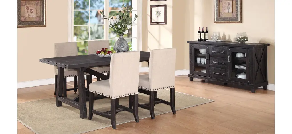 Warm tones with unique distressed details ignite the look of the Brook 3-pc. bar-height dining set. Coordinating pieces make this collection a stylish and versatile choice.
