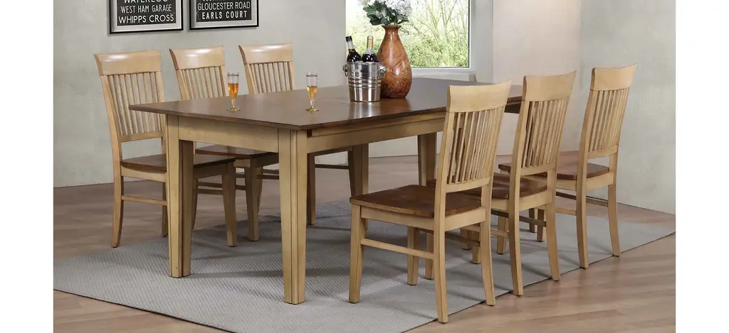 Classic farmhouse style brings instant charm to your large dining area. Enjoy the convenience of this Brook 5-pc. dining set that adjusts to four different sizes for holidays and special occasions, not leaving your free space occupied by an unused table most of the year. Wouldn't it be wonderful to have the room to dance, exercise, home office, whatever floats your boat, while the kids are away? Why limit yourself to a small table, that may be sufficient most of the time, but requires you to improvise for additional seating when your studious little angels come back from college with two car loads of friends, parties, family get-togethers or when guest arrive when you least expect it? This expansion table is your space saving answer. When you are living your day to day life keep this traditional dining table small. Perfect if you require seating for 12 people now, and then decide or need to downsize, this well-designed country cottage table has the functionality to follow you everywhere.