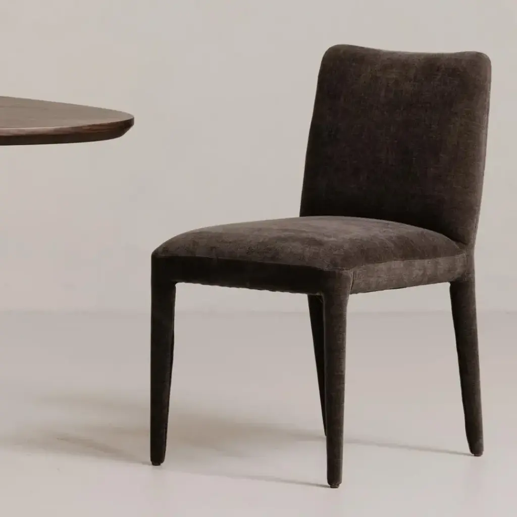 The Calla dining chair is fully upholstered, generously padded for comfort and constructed with a robust ash wood frame and a rubber wood base. The comforting hue is effortlessly adaptable, allowing the chair to seamlessly integrate with any dining table, regardless of color or style.