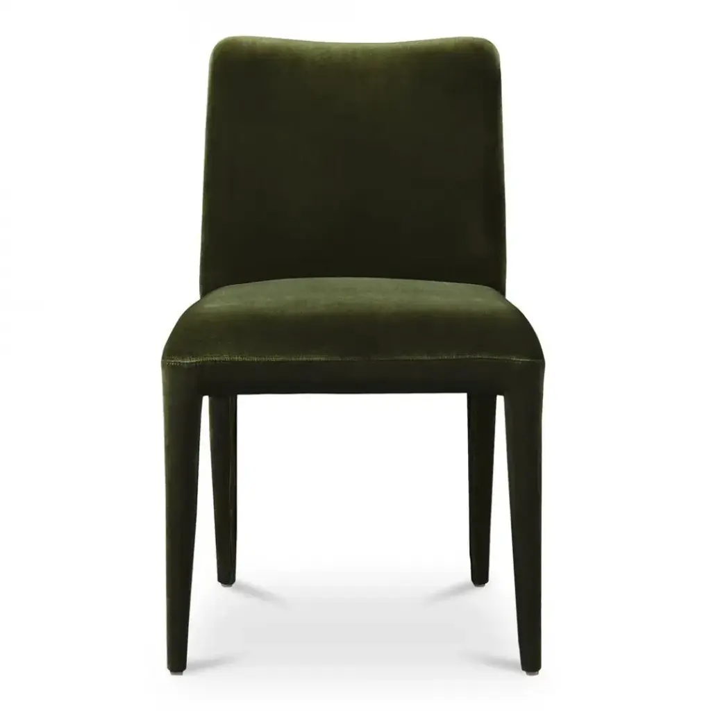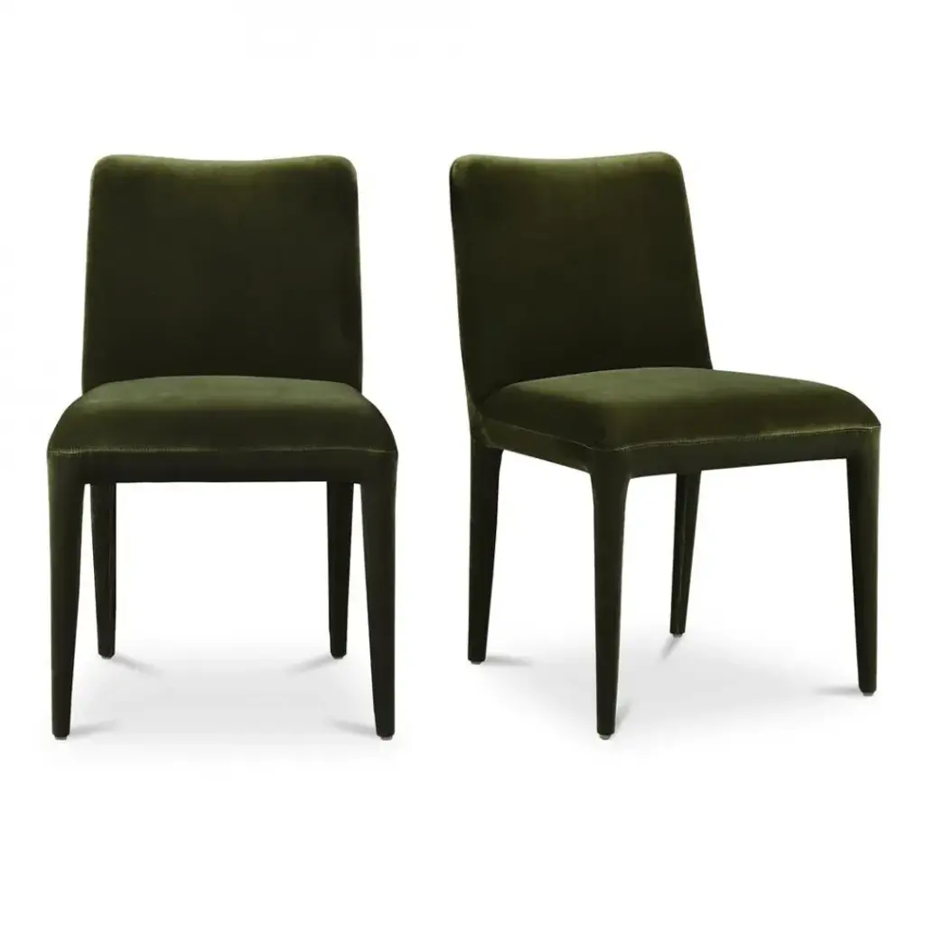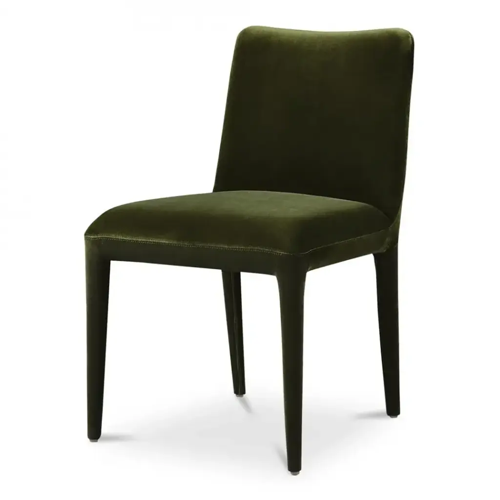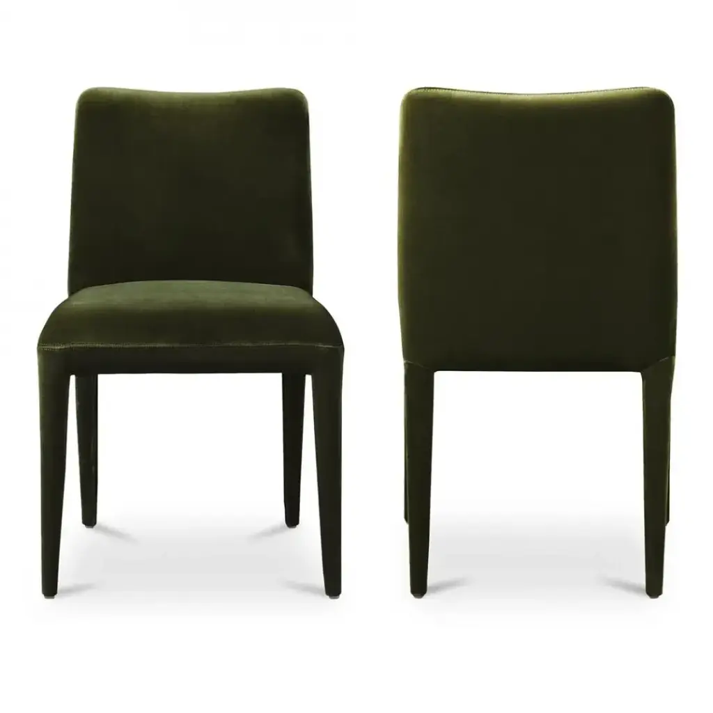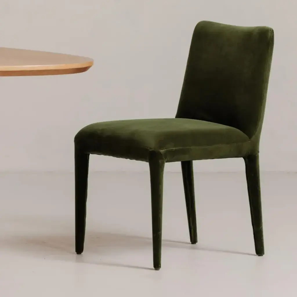 Meticulously crafted to marry elegance and comfort, the fully upholstered Calla dining chair's sturdy ash wood frame is complemented by a robust rubber wood base, offering unparalleled stability and support for long-lasting use—a timeless option to elevate the dining space in plush velvet green.